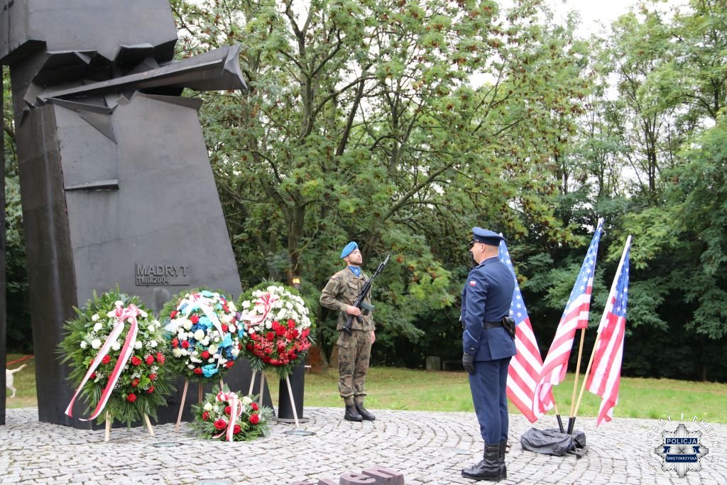 Dzisiaj w Kielcach odbył się uroczysty apel upamiętniający XXIV rocznicę zamachu na World Trade Center. Udział w wydarzeniu wzięli przedstawiciele lokalnych władz i mieszkańców miasta. Nie zabrakło przedstawicieli służb mundurowych, w tym sił zbrojnych USA. Wiązankę w imieniu Komendanta Wojewódzkiego Policji w Kielcach złożył podinsp. Rafał Radomski.