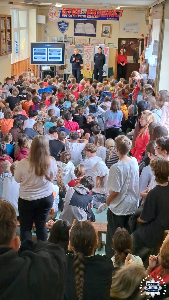 W ramach obchodów Tygodnia Przeciwdziałania Przemocy Rówieśniczej uczniowie Szkoły Podstawowej nr 9 w Kielcach mieli okazję uczestniczyć w wyjątkowych zajęciach prowadzonych przez funkcjonariuszki z Komendy Wojewódzkiej Policji w Kielcach. Spotkanie odbyło się w siedzibie placówki i zgromadziło uczniów klas IV–VIII.