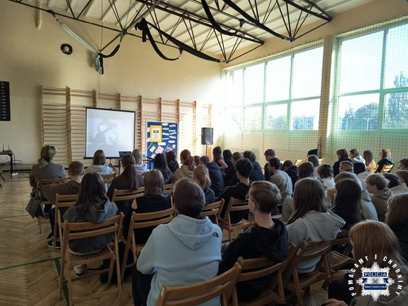 W dniach 29 września – 3 października 2025 r. w szkołach i placówkach oświatowych odbywa się ogólnopolska inicjatywa Ministerstwa Edukacji Narodowej pn. „Tydzień o Przeciwdziałaniu Przemocy Rówieśniczej”. Na zakończenie tej inicjatywy policjantki z Komendy Wojewódzkiej Policji w Kielcach uczestniczyły w zajęciach z uczniami Zespołu Szkół Przemysłu Spożywczego.