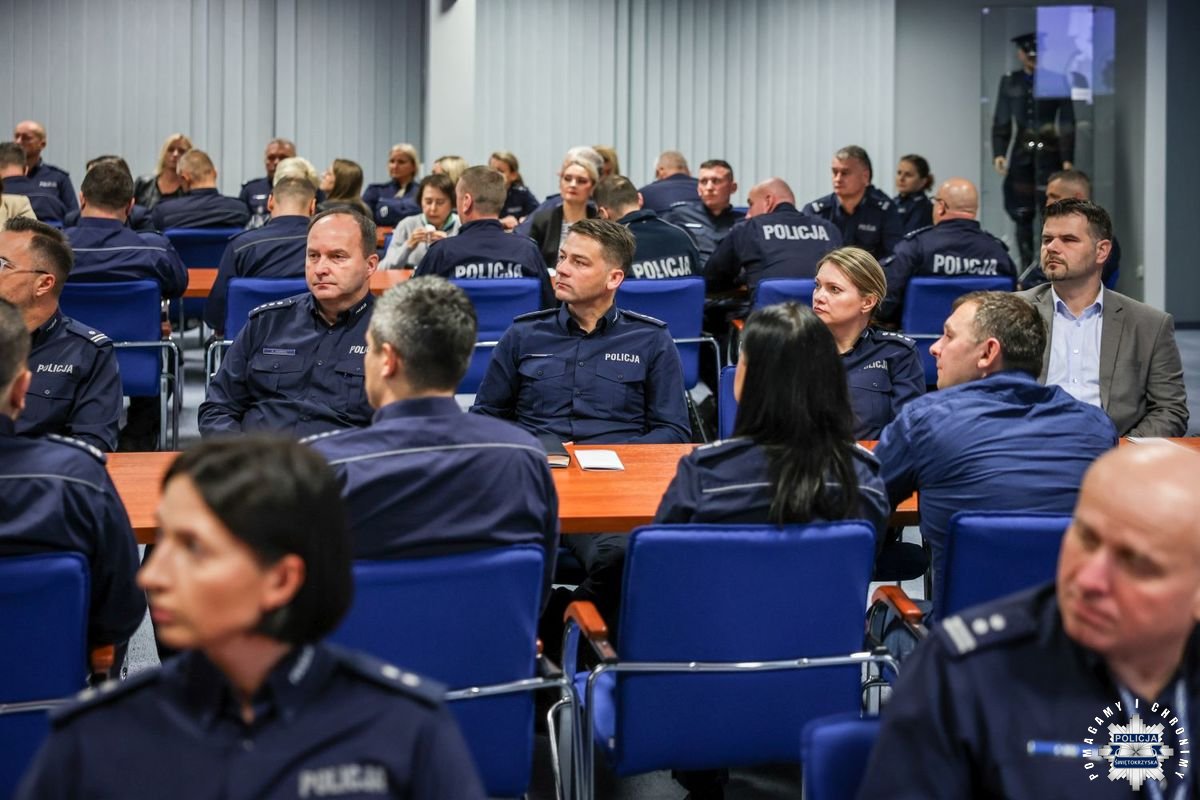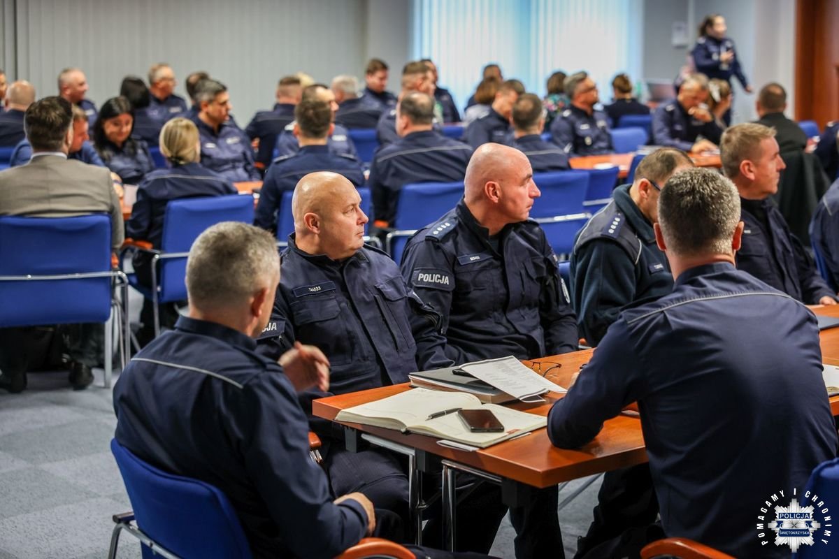 Podkom. Łukasz Chmielewski omówił wpływ warunków pracy na zdrowie i komfort psychiczny policjantów, natomiast nadkom. Mariusz Bednarski, podkom. Dominik Gawior i mł. asp. Jakub Majka podzielili się doświadczeniami dotyczącymi aktywności na rzecz służby i społeczeństwa.