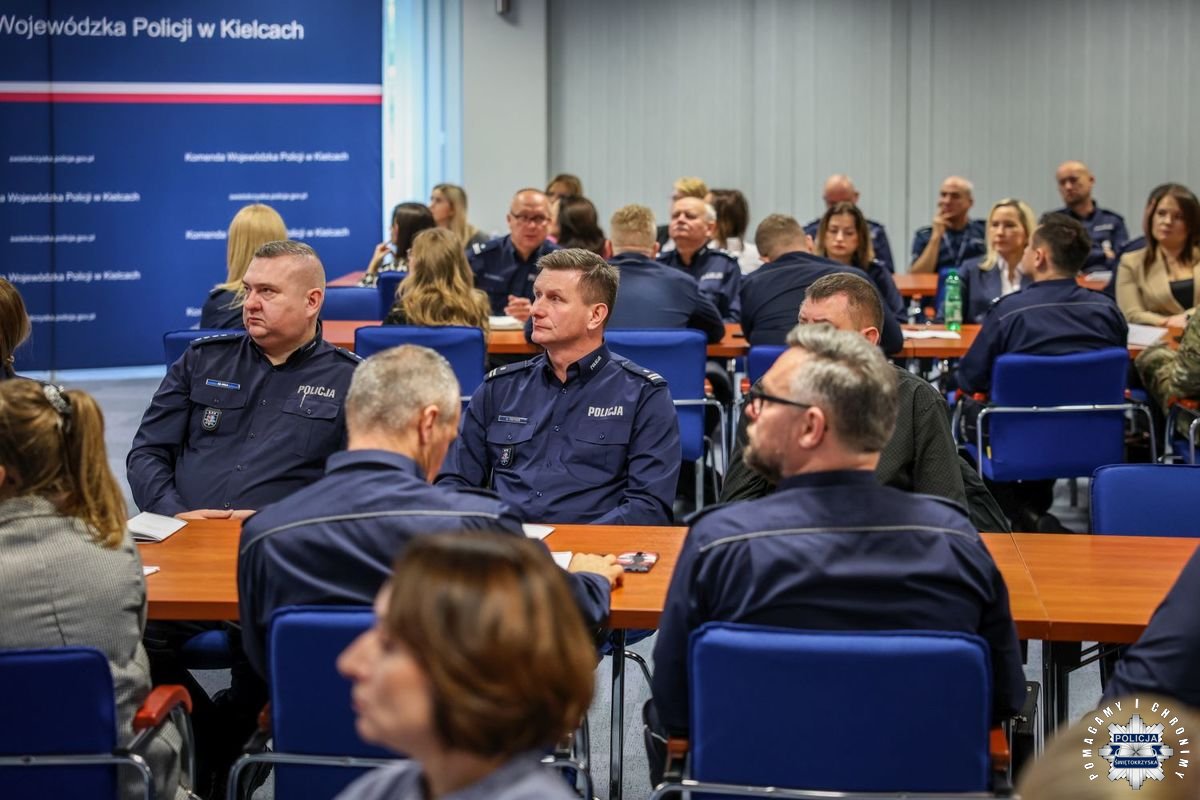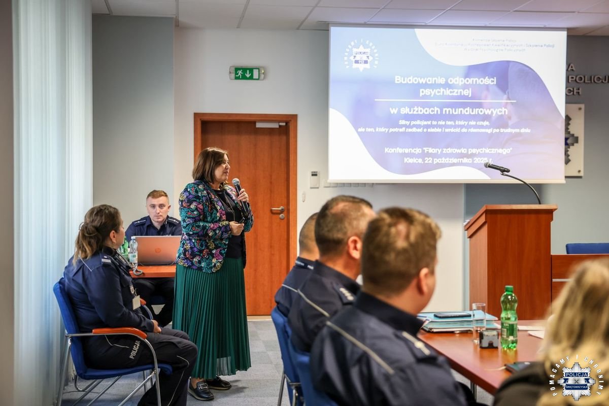 W związku ze Światowym Dniem Zdrowia Psychicznego dzisiaj w sali im. mjr Jana Piwnika „Ponurego” w Komendzie Wojewódzkiej Policji w Kielcach odbyła się konferencja pod hasłem „Filary zdrowia psychicznego”. Spotkanie otworzył Zastępca Komendanta Wojewódzkiego Policji w Kielcach mł. insp. Marcin Chatys, witając uczestników oraz podkreślając znaczenie troski o kondycję psychiczną funkcjonariuszy i pracowników Policji. Organizatorem przedsięwzięcia był Zespół Psychologów KWP w Kielcach.