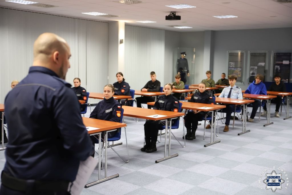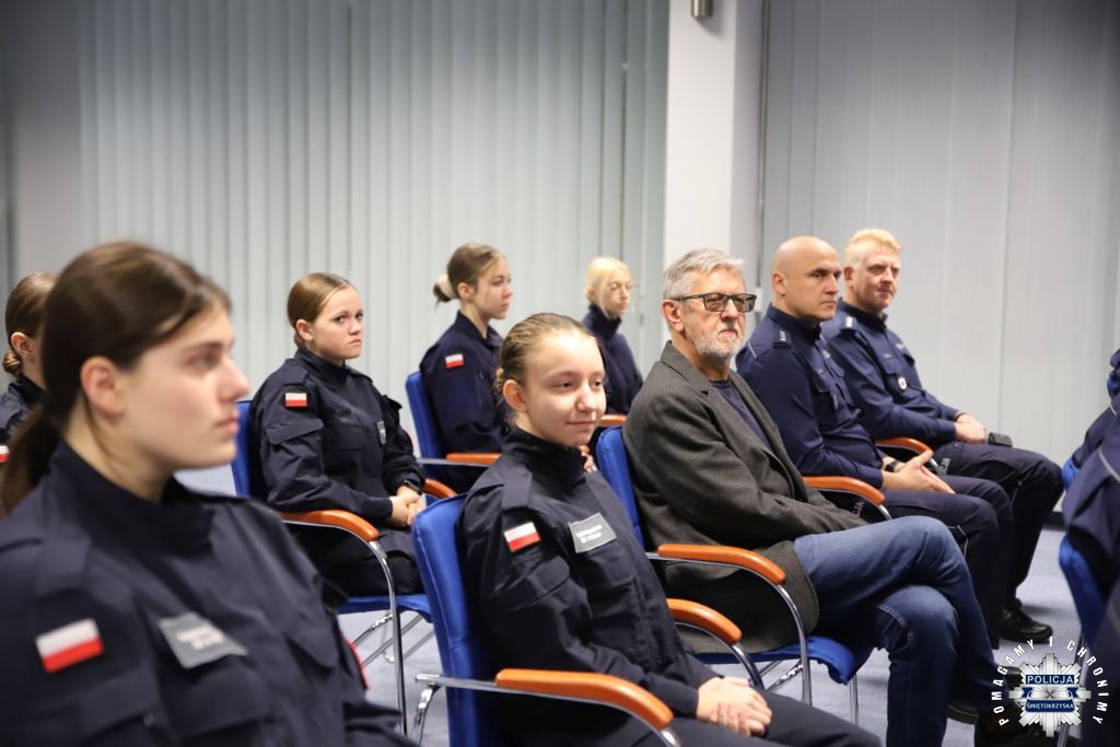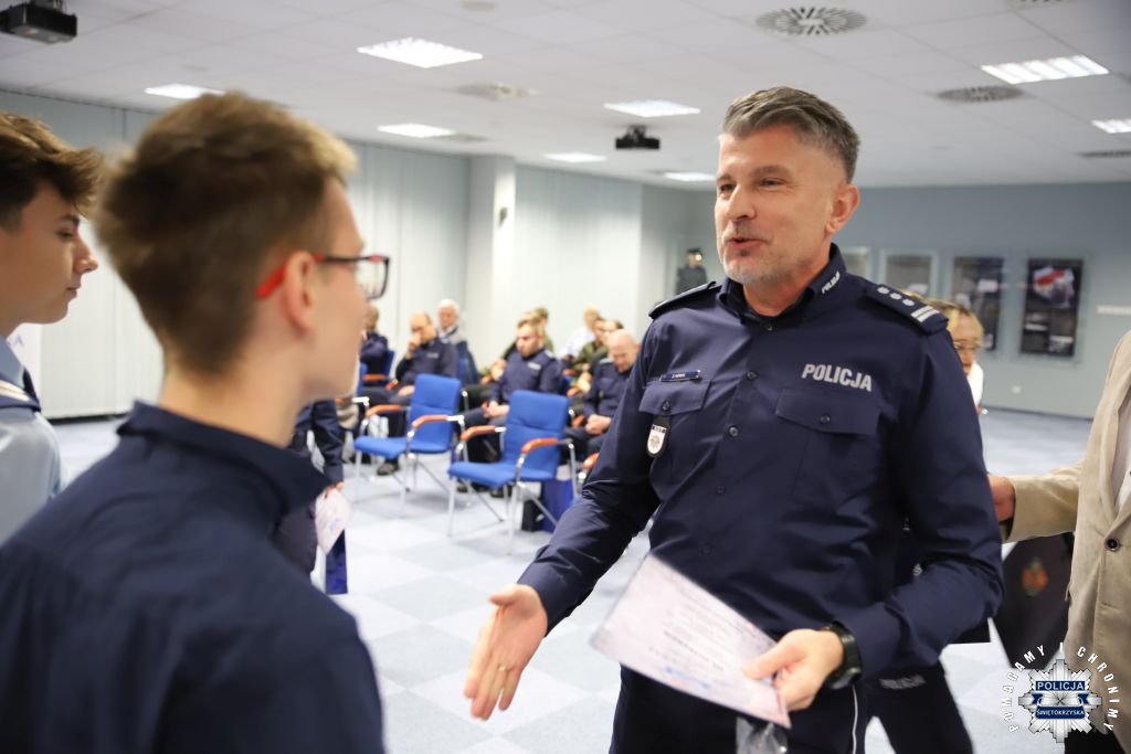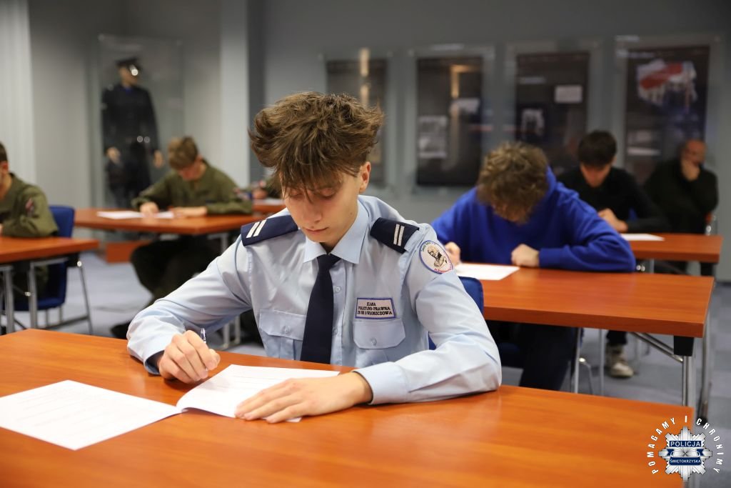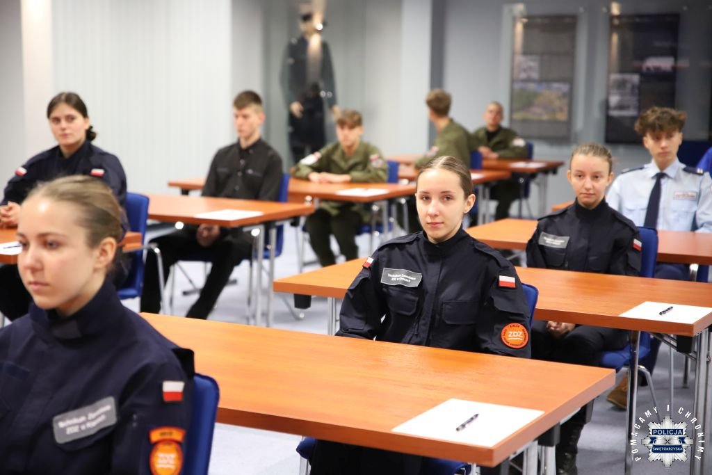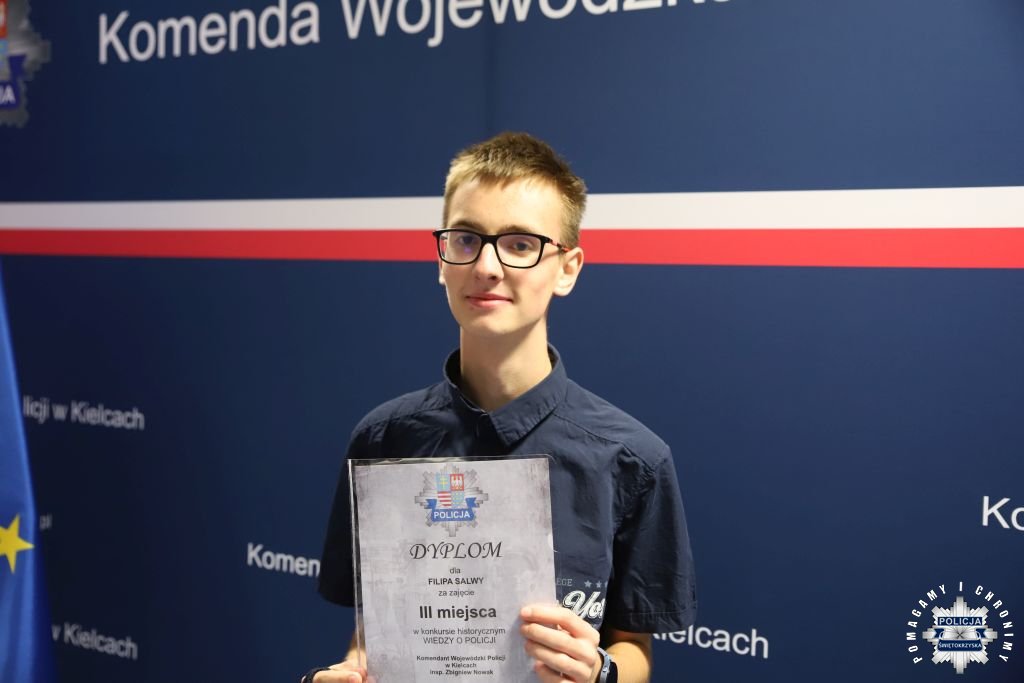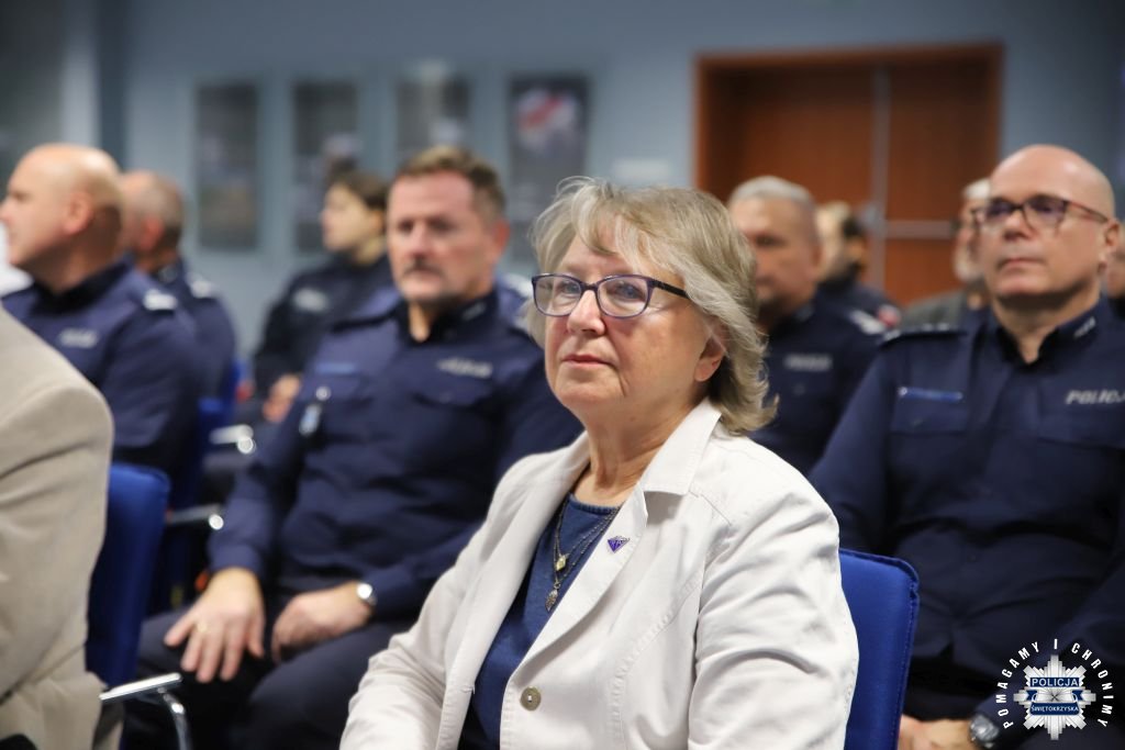 Dziś, na tej samej sali zebrali się wyróżnieni uczestnicy konkursu, przedstawiciele szkół, urzędów oraz świętokrzyskiej Policji aby podsumować rywalizację. Była to także okazja, by wspólnie uczcić tradycję formacji, która od 106 lat stoi na straży bezpieczeństwa i porządku publicznego. Podczas uroczystości obecni mogli wysłuchać wykładu o początkach obecności kobiet w Policji – w tym roku przypada setna rocznica tego pięknego jubileuszu. Tą wiedzą wykazali się najlepsi uczestnicy konkursu, wśród których znajdowali się policjanci i uczniowie.
