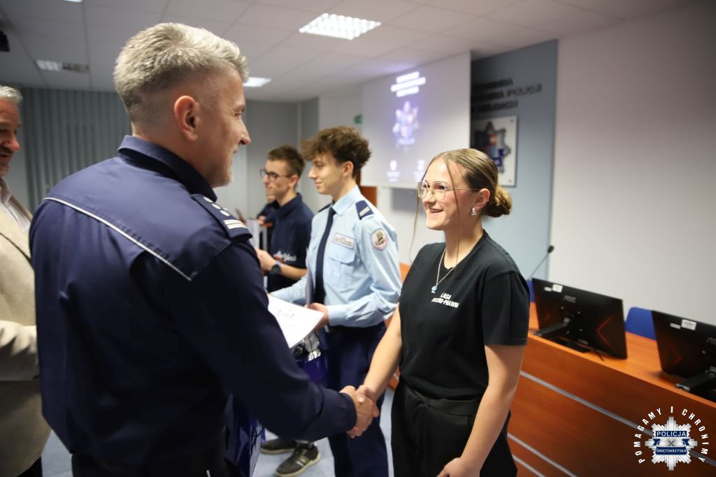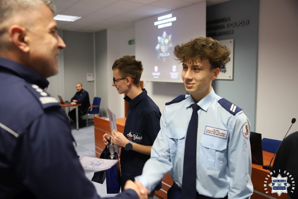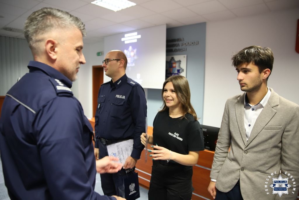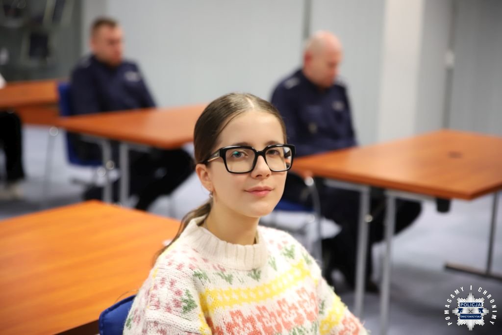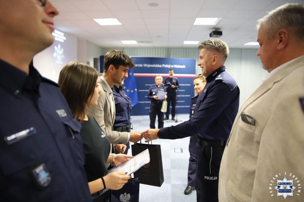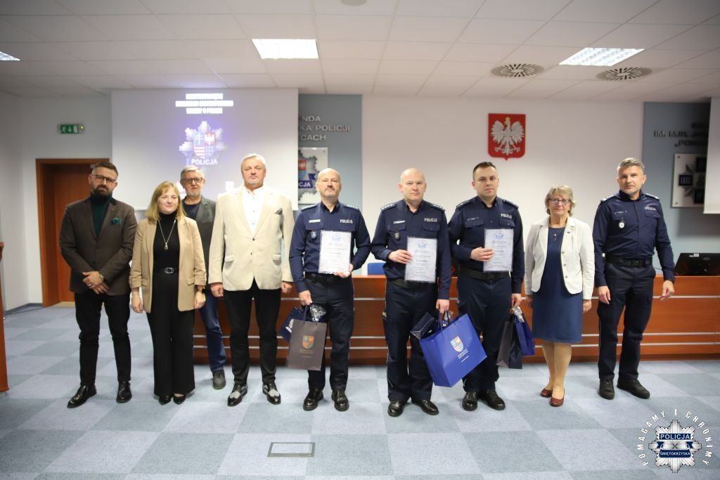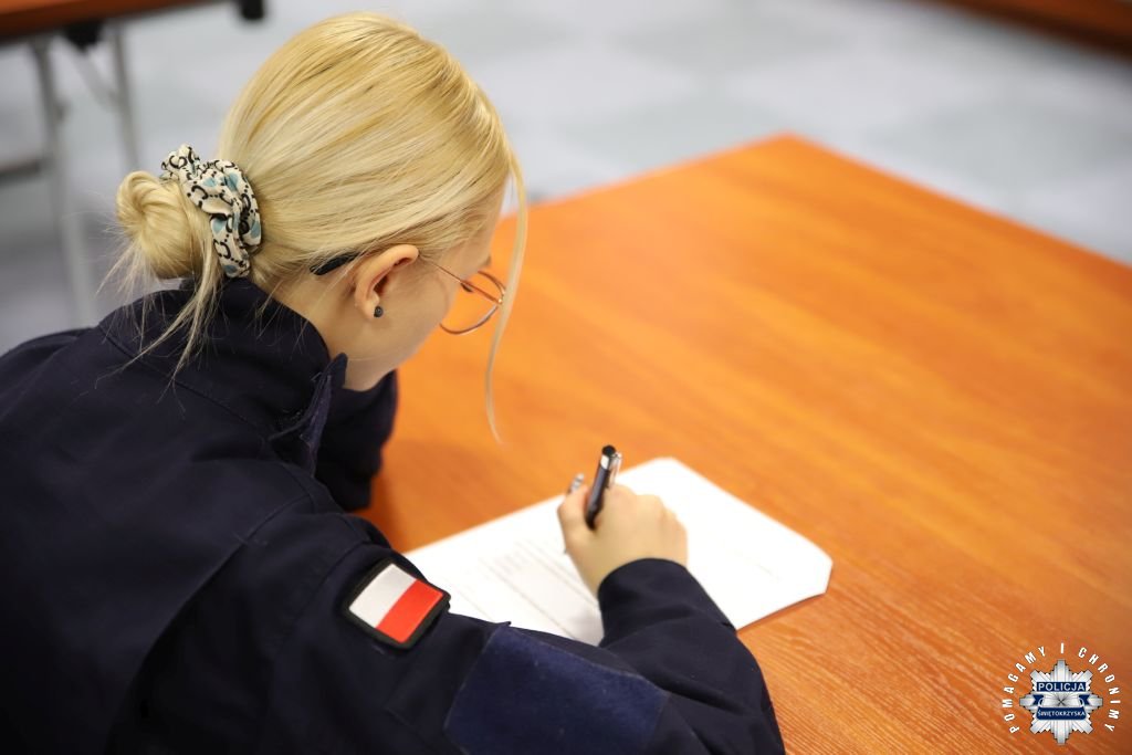 Dziś, na tej samej sali zebrali się wyróżnieni uczestnicy konkursu, przedstawiciele szkół, urzędów oraz świętokrzyskiej Policji aby podsumować rywalizację. Była to także okazja, by wspólnie uczcić tradycję formacji, która od 106 lat stoi na straży bezpieczeństwa i porządku publicznego. Podczas uroczystości obecni mogli wysłuchać wykładu o początkach obecności kobiet w Policji – w tym roku przypada setna rocznica tego pięknego jubileuszu. Tą wiedzą wykazali się najlepsi uczestnicy konkursu, wśród których znajdowali się policjanci i uczniowie.