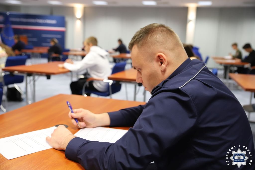 W zeszły poniedziałek na Sali Narad im. mjr Jana Piwnika „Ponurego” do zmagań zasiadło 26 uczestników. Wśród uczniów szkół średnich znalazło się 5 policjantów. Test składał się z 25 pytań zamkniętych oraz dwóch otwartych. Aby być w gronie najlepszych, należało wykazać się znajomością historii Policji Państwowej II RP, posiadać informacje o patronie świętokrzyskiej Policji oraz – co idealnie wpisuje się w obchodzoną rocznicę – znać historię kobiet w naszej formacji. Konkurs otworzył Zastępca Komendanta Wojewódzkiego Policji w Kielcach inspektor Jacek Cholewa. Zarząd Województwa Świętokrzyskiego reprezentowała Pani Anita Koniusz.