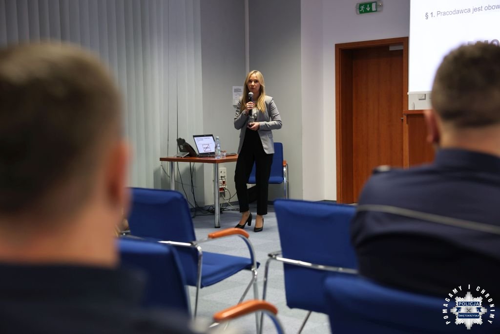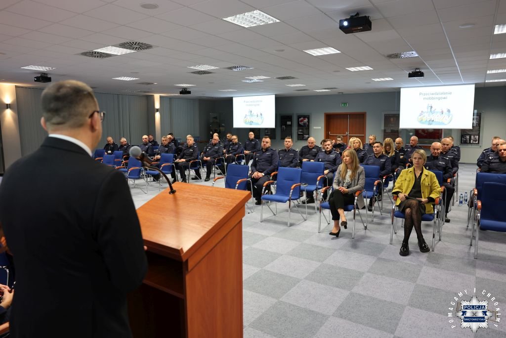 W Komendzie Wojewódzkiej Policji w Kielcach odbyło się spotkanie edukacyjno-informacyjne poświęcone tematyce prewencji zagrożeń psychospołecznych w środowisku pracy. Wydarzenie zorganizowano w ramach programu profilaktycznego Państwowej Inspekcji Pracy.