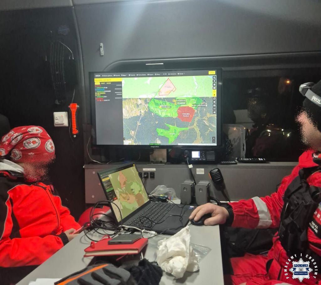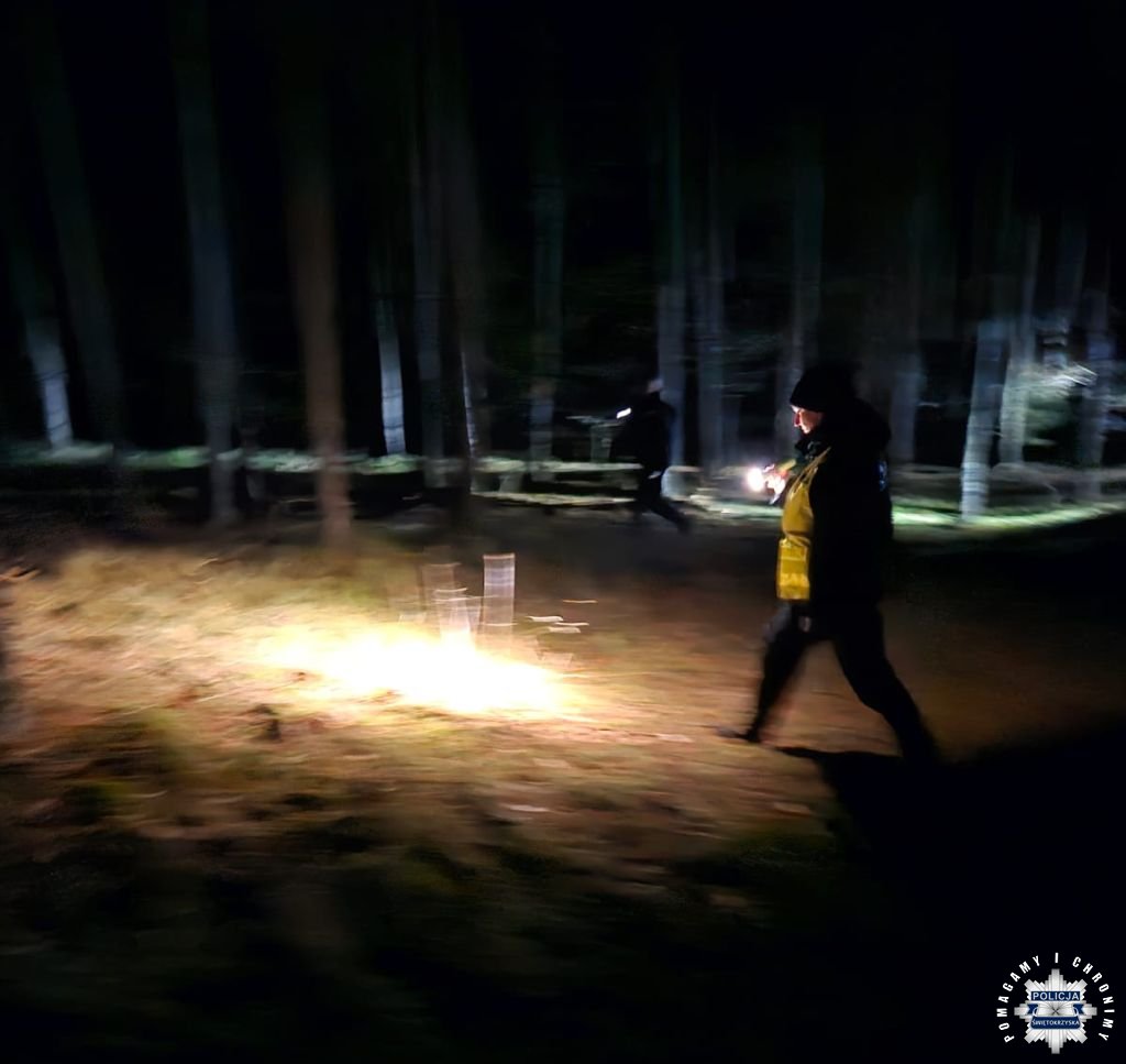 PKP o osobie znajdującej się rejonie Centralnej Magistrali Kolejowej w miejscowości Jamskie. Będący w trakcie poszukiwań I Zastępca Komendanta Powiatowego Policji we Włoszczowie mł. insp. Marek Gaj wraz z Naczelnikiem Wydziału Kryminalnego nadkom. Mariuszem Pytlem natychmiast udali się na miejsce. Po sprawdzeniu potwierdzili, że jest to zaginiona mieszkanka. Policjanci udzielili 84-latce pomocy i okryli ją chroniąc przed dalszym wychłodzeniem. Kobieta trafiła pod opiekę zespołu ratownictwa medycznego, a następnie rodziny.