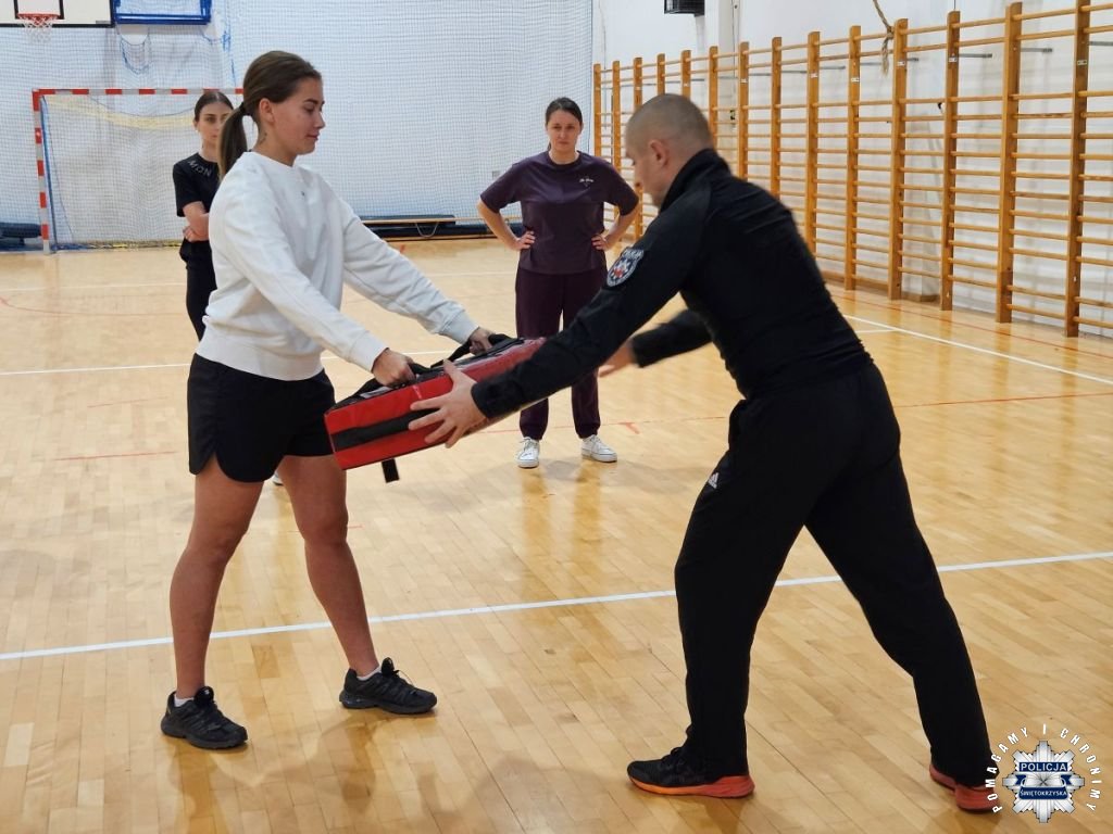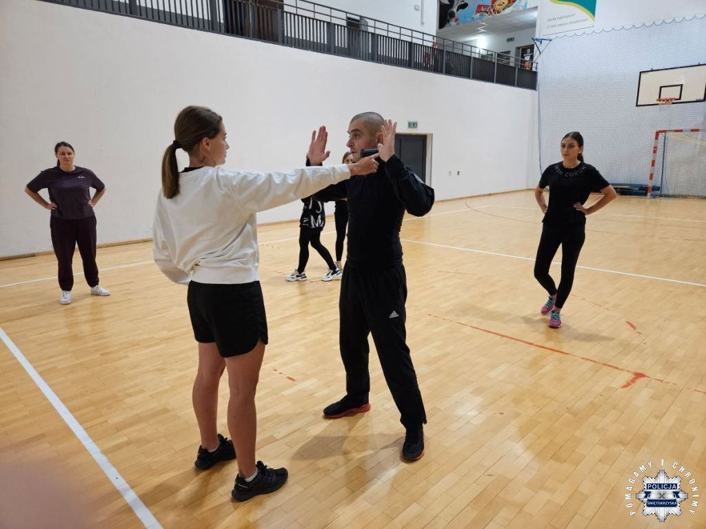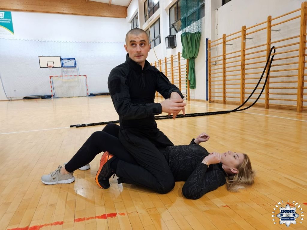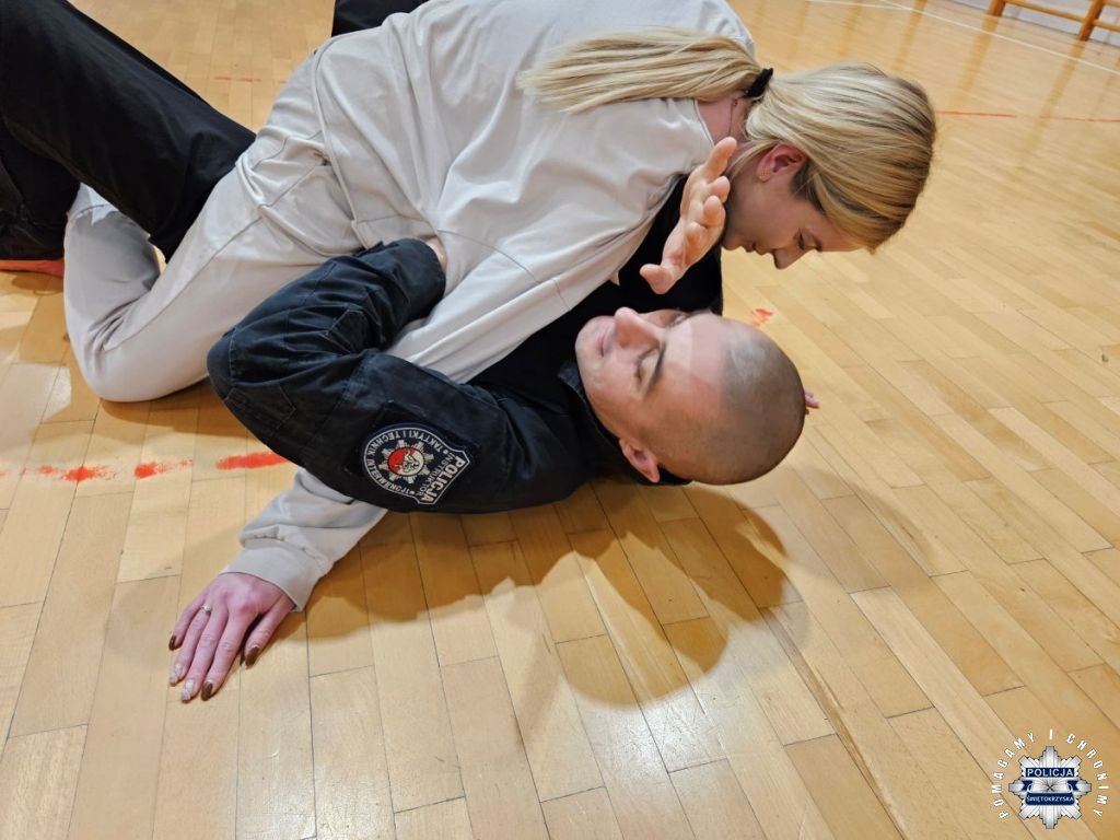 Wczoraj funkcjonariuszki oraz pracownice cywilne włoszczowskiej komendy uczestniczyły w szczególnym szkoleniu. Pod okiem instruktora doskonaliły swoje umiejętności z zakresu samoobrony.