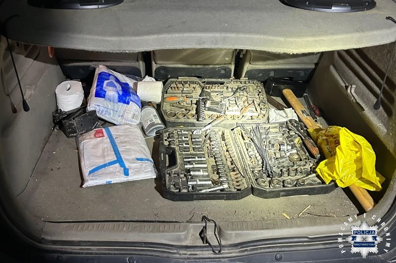 W piątek nad ranem policjanci z Wydziału Kryminalnego opatowskiej jednostki przy wsparciu kryminalnych z Komendy Wojewódzkiej Policji w Kielcach zatrzymali na terenie powiatu opatowskiego dwóch mężczyzn, 34 – latka z gminy Ożarów oraz 35 – latka z Kielc. Mężczyźni poruszali się pojazdem marki Renault. W trakcie podjętych czynności mundurowi zabezpieczyli w pojeździe pieniądze w kwocie przekraczającej 380 tysięcy złotych, które jak się później okazało, pochodziły z dokonanych tej nocy na terenie województwa podkarpackiego przestępstw oraz narzędzia, którymi sprawcy posługiwali się podczas włamań. W wyniku przeprowadzonych ustaleń okazało się, że zatrzymani mężczyźni dokonywali kradzieży z włamaniem również na terenie powiatu opatowskiego. Ich głównym celem były stacje kontroli pojazdów oraz hurtownia i sklep budowlany. Po analizie zebranych w sprawie materiałów mężczyźni usłyszeli łącznie po 8 zarzutów. W niedzielę Sąd Rejonowy w Opatowie zastosował środek zapobiegawczy w postaci tymczasowego aresztowania na okres 3 miesięcy wobec obydwóch zatrzymanych. Młodszemu z nich grozi kara do10 lat pozbawienia wolności, starszy działał w warunkach recydywy wobec czego może się spodziewać kary do 15 lat pozbawienia wolności. Ostateczną decyzję w ich sprawie podejmie sąd.