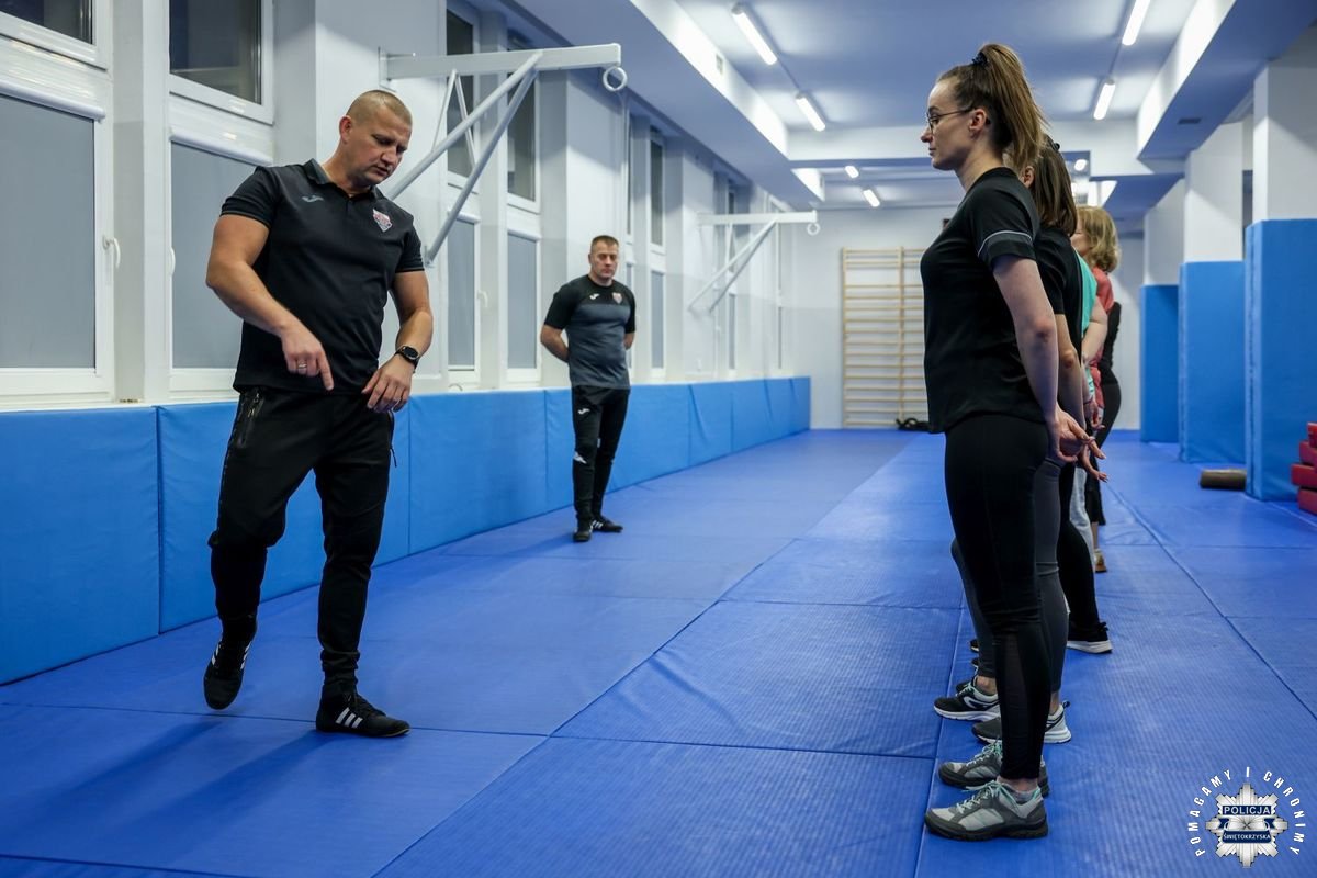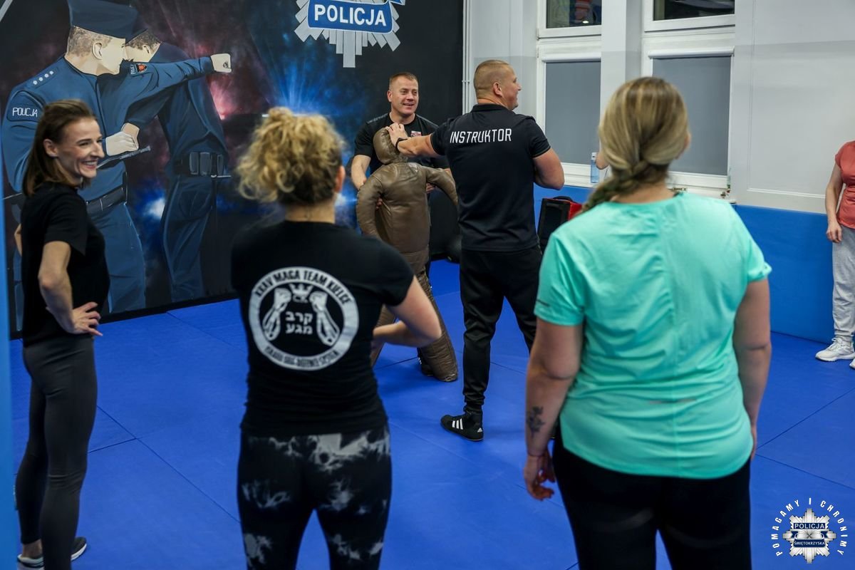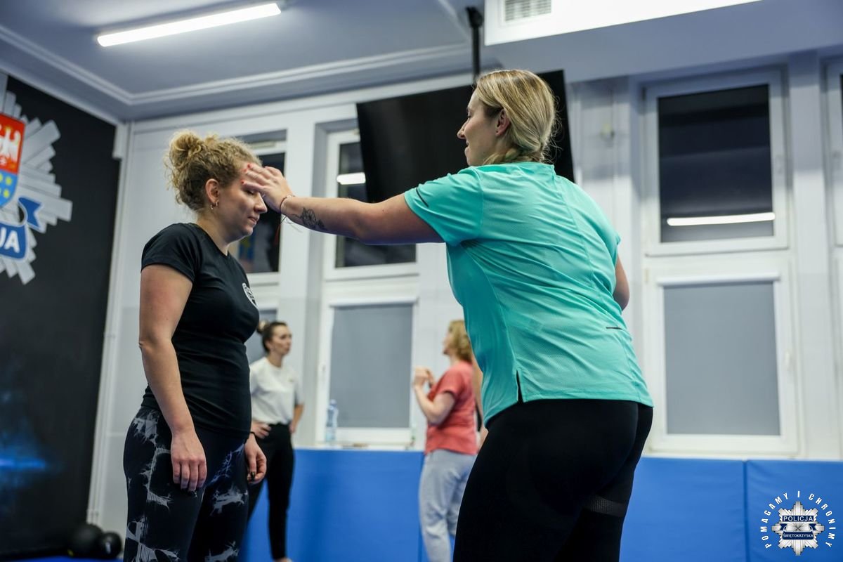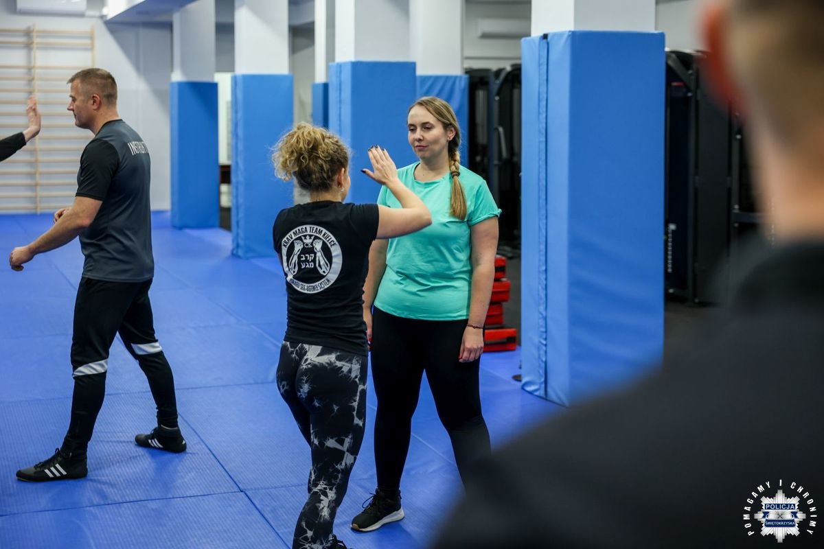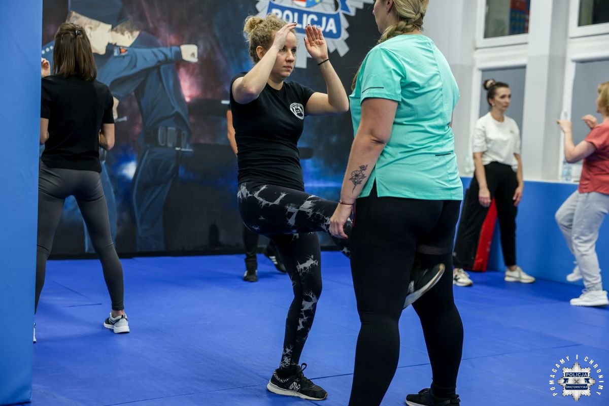 Na samoobronę składa się wiele elementów, co instruktorzy wczorajszych zajęć podkreślali wielokrotnie. Nabycie umiejętności oceny zagrożeń jest jednym z celów szkolenia – w wielu przypadkach obserwacja otoczenia i odpowiednia reakcja może sprawić, że unikniemy niebezpieczeństwa. Policyjni instruktorzy, którzy na co dzień zajmują się taktykami i technikami przeprowadzania interwencji, opowiadali uczestniczkom szkolenia o podstawowych i jednocześnie najbardziej skutecznych technikach samoobrony. Znajomość miejsc wrażliwych na ciele człowieka również była przedmiotem dyskusji, w kontekście skuteczności odpierania ataków. Część wczorajszych zajęć poświęcono także prawnym aspektom samoobrony.