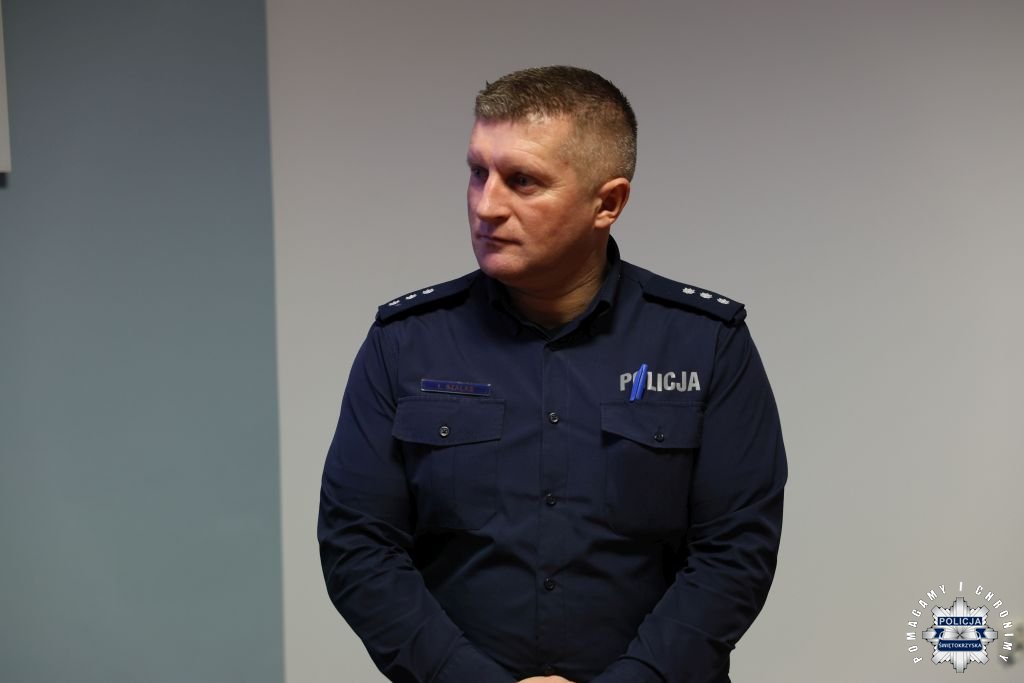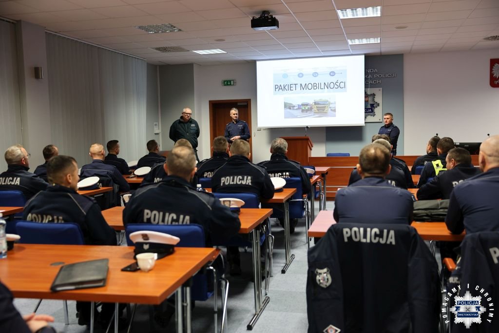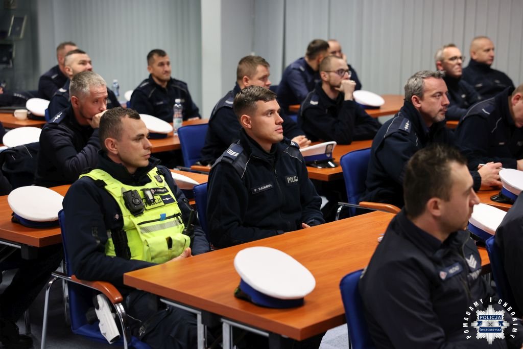 W codziennej służbie świętokrzyscy policjanci ruchu drogowego ujawniają wykroczenia, mające wpływ na bezpieczeństwo na trasach i ulicach w naszym regionie. Ponadto obsługują zdarzenia drogowe oraz zatrzymują sprawców przestępstw. W trakcie tych interwencji niejednokrotnie spotykają się z nieprawidłowościami w transporcie drogowym, co wiąże się ze sporządzeniem dokumentacji, rozpoczynającej postępowanie administracyjne, prowadzone w przez funkcjonariuszy Inspekcji Transportu Drogowego. Zmieniające się przepisy, procedury oraz sposoby prowadzenia postępowań, wymagają omówienia i doprecyzowania dla właściwego obiegu dokumentacji. Dlatego też w Komendzie Wojewódzkiej Policji w Kielcach odbyło się dzisiaj szkolenie dla 26 mundurowych z Wydziałów Ruchu Drogowego ze wszystkich jednostek w naszym województwie, przeprowadzone przez funkcjonariusza Norberta Sadłochę z Wojewódzkiego Inspektoratu Transportu Drogowego w Kielcach. Główną tematyką zajęć były przepisy związane z dokumentacją podczas interwencji wobec kierujących oraz przewoźników w transporcie drogowym.