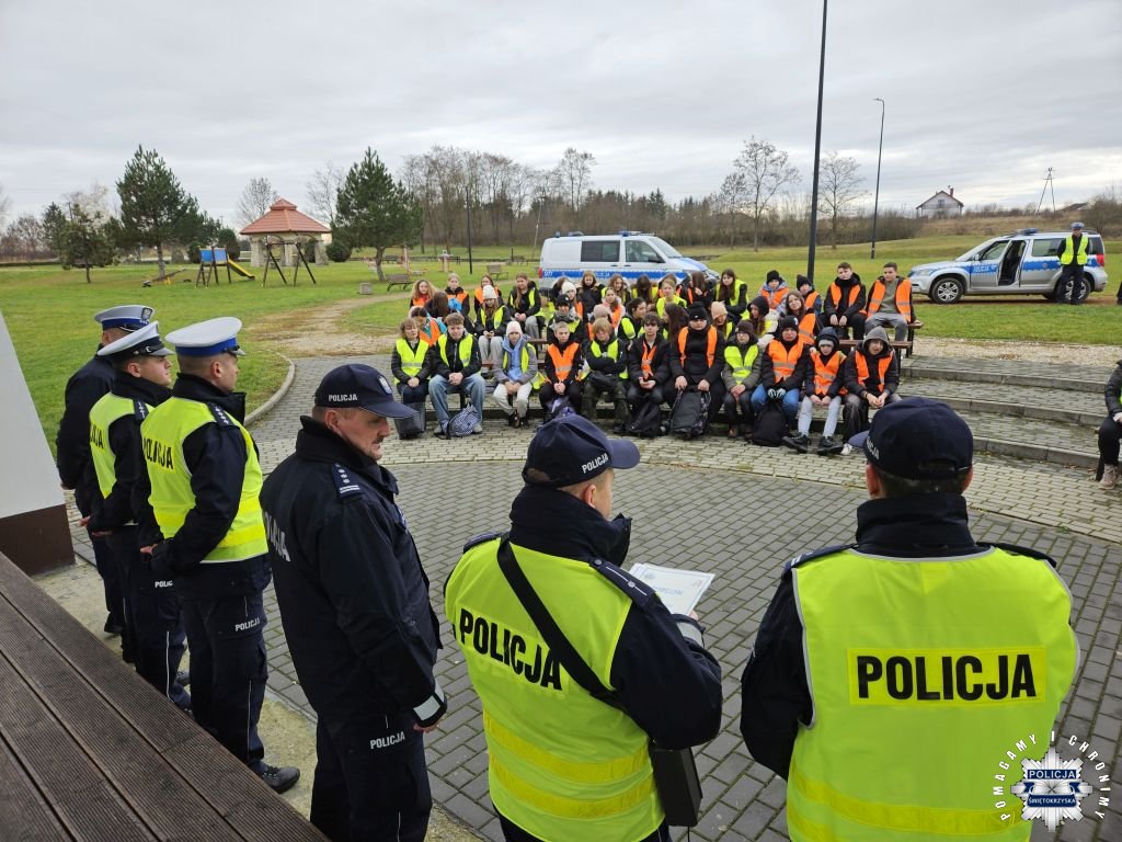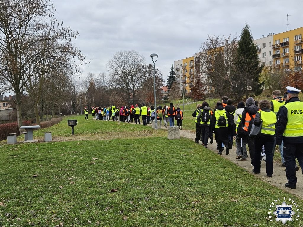 Funkcjonariusze Komendy Powiatowej Policji w Busku – Zdroju zorganizowali i przeprowadzili wczoraj edukacyjny rajd pieszy pn. „Odblaskowy Rajd Mikołajkowy”. Inicjatywa zorganizowana w okresie zwiększonej aktywności pieszych i zbliżającego się sezonu zimowego, miała na celu promowanie bezpieczeństwa w ruchu drogowym, ze szczególnym uwzględnieniem znaczenia używania elementów odblaskowych po zmroku.