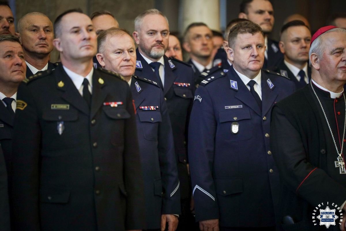 Dzisiejsze wigilijne spotkanie opłatkowe odbyło się w Wojewódzkim Domu Kultury w Kielcach i zgromadziło liczne grono przybyłych gości. Obecni byli m.in. funkcjonariusze Policji garnizonu świętokrzyskiego na czele z Komendantem Wojewódzkim Policji w Kielcach insp. Zbigniewem Nowakiem oraz jego zastępcami, Ordynariusz Diecezji Kieleckiej Jego Ekscelencja Ksiądz Biskup dr Jan Piotrowski, Wicewojewoda Świętokrzyski Pan Michał Skotnicki, Zastępca Prezydenta Miasta Kielce Pan Tomasz Porębski. Wśród przedstawicieli służb mundurowych nie zabrakło między innymi starszego brygadiera Marcina Charuby – Świętokrzyskiego Komendanta Wojewódzkiego PSP, płk. Rafała Kowalskiego – Dowódcy 8 Dywizji Piechoty Armii Krajowej, płk. Krzysztofa Orzecha – Komendanta Centrum Przygotowań do Misji Zagranicznych w Kielcach, płk. Sławomira Machniewicza – Dowódcy 10 Świętokrzyskiej Brygady Obrony Terytorialnej, płk. SG Renaty Obrzut – Zastępcy Komendanta Karpackiego Oddziału Straży Granicznej. Obecni byli także przedstawiciele delegatury ABW, Służby Więziennej, Inspektoratu Transportu Drogowego, Regionalnej Dyrekcji Lasów Państwowych, Nadleśnictwa Kielce, Straży Miejskiej w Kielcach, Regionalnej Straży Ochrony Kolei w Kielcach, a także Sądu Okręgowego w Kielcach oraz zaprzyjaźnionych firm i instytucji, którzy zawsze chętnie wspierają działania Policji.