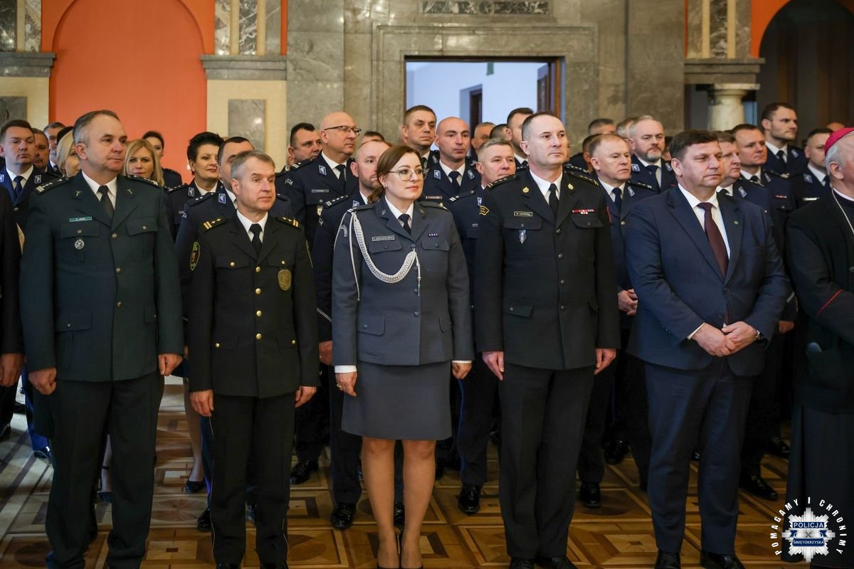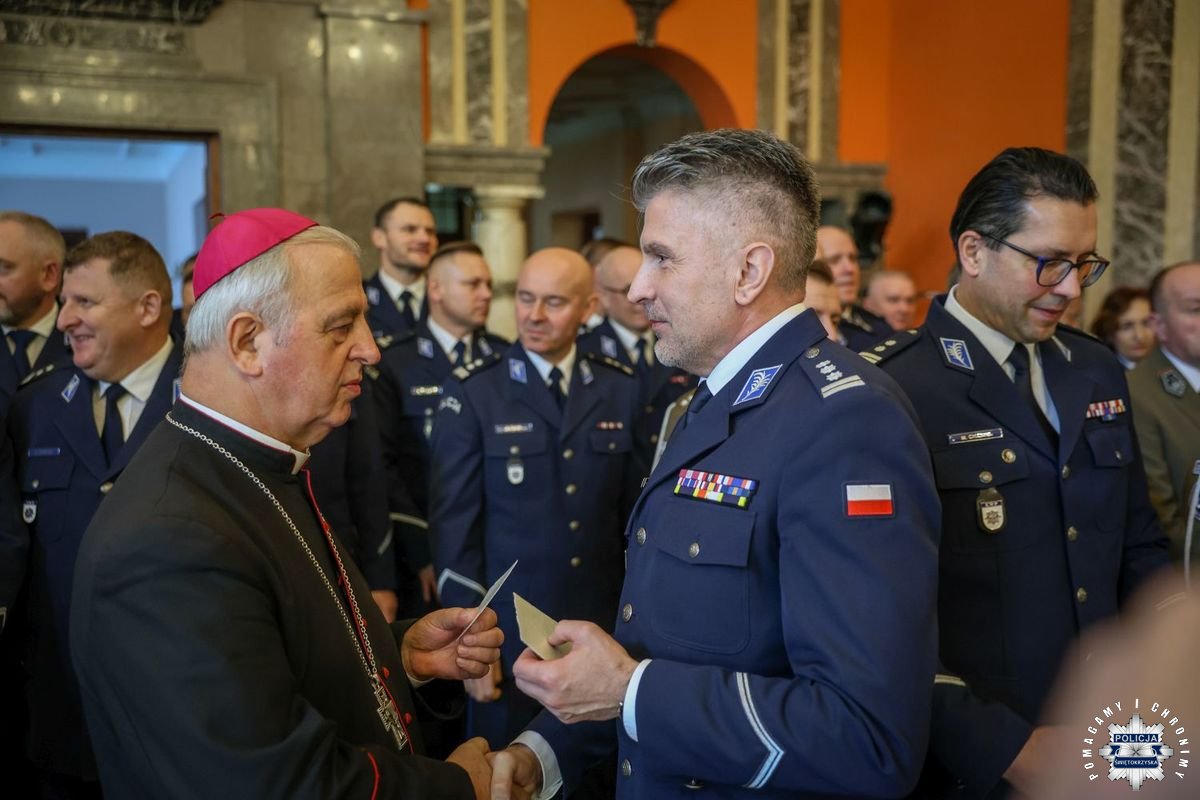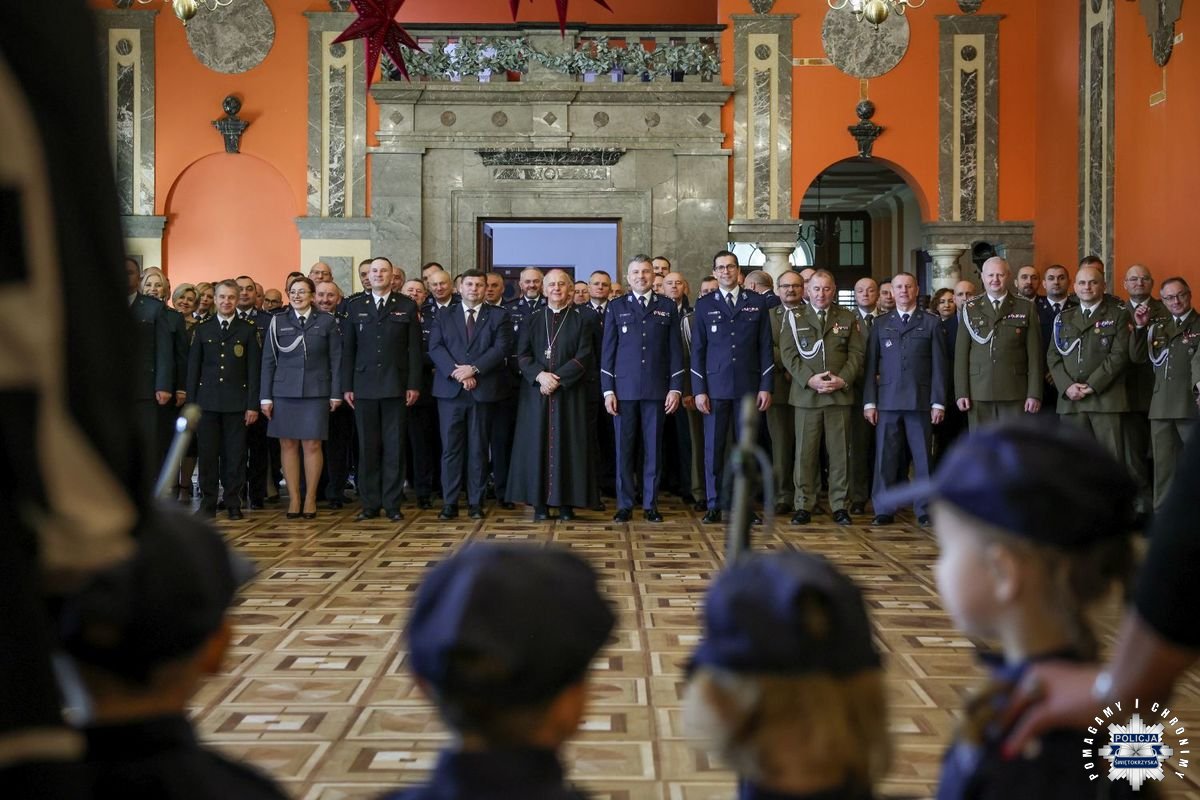 Wigilia i Boże Narodzenie to jedne z ważniejszych dni w roku. To czas, kiedy spotykamy się z rodziną, przyjaciółmi, dzielimy się opłatkiem i życzymy sobie wszystkiego, co najlepsze. Dziś przy rozbrzmiewających dźwiękach kolęd, odbyło się uroczyste, przedświąteczne spotkanie, w którym uczestniczyli zaproszeni goście, przedstawiciele zaprzyjaźnionych służb i świętokrzyscy policjanci na czele z Komendantem Wojewódzkim Policji w Kielcach insp. Zbigniewem Nowakiem.