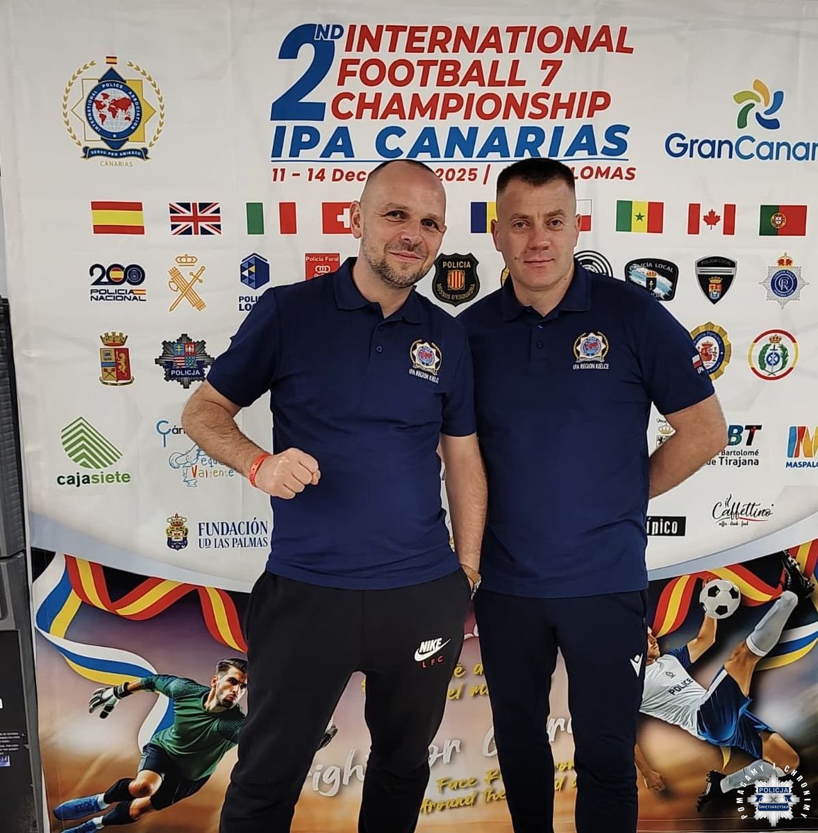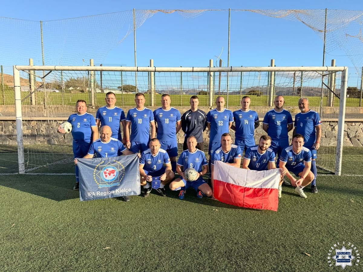 Reprezentacja Komendy Wojewódzkiej Policji w Kielcach wzięła udział w Międzynarodowym Turnieju w Piłce Nożnej – IPA CANARIAS 2025. Mistrzostwa zapowiadały się obiecująco, jednak pogoda pokrzyżowała plany. Zawody trzeba było przerwać, a ostateczne wyniki oparte zostały na podstawie meczów fazy grupowej. Choć bilans dawał nam pewny awans do części pucharowej, w tej sytuacji sklasyfikowano naszych poza podium.