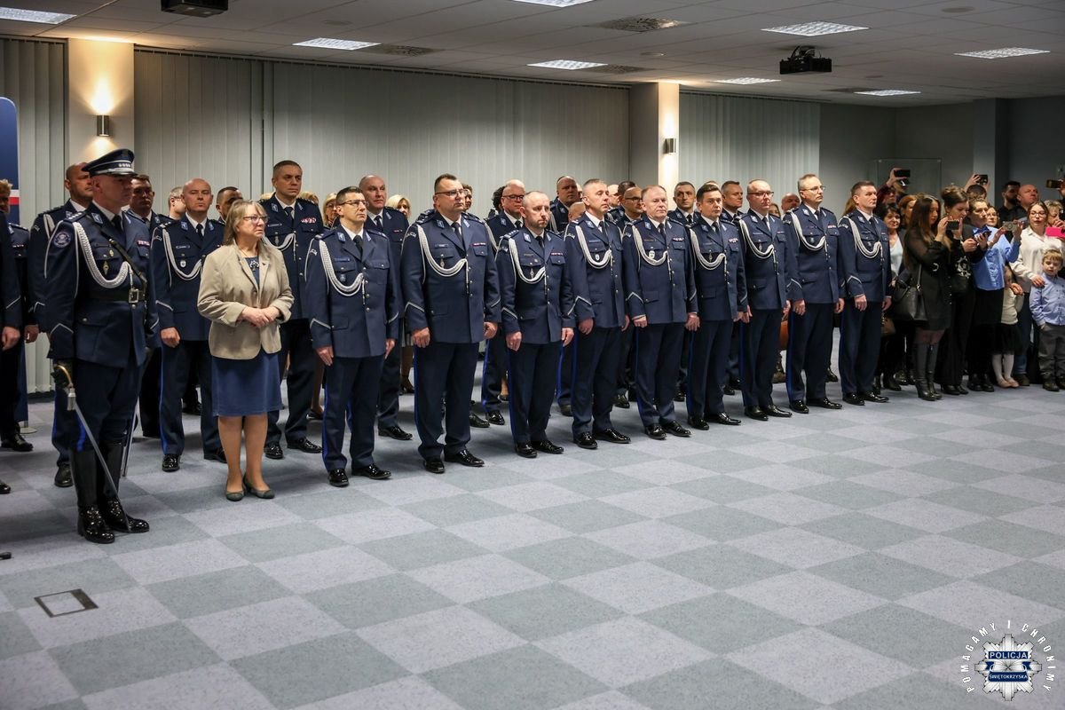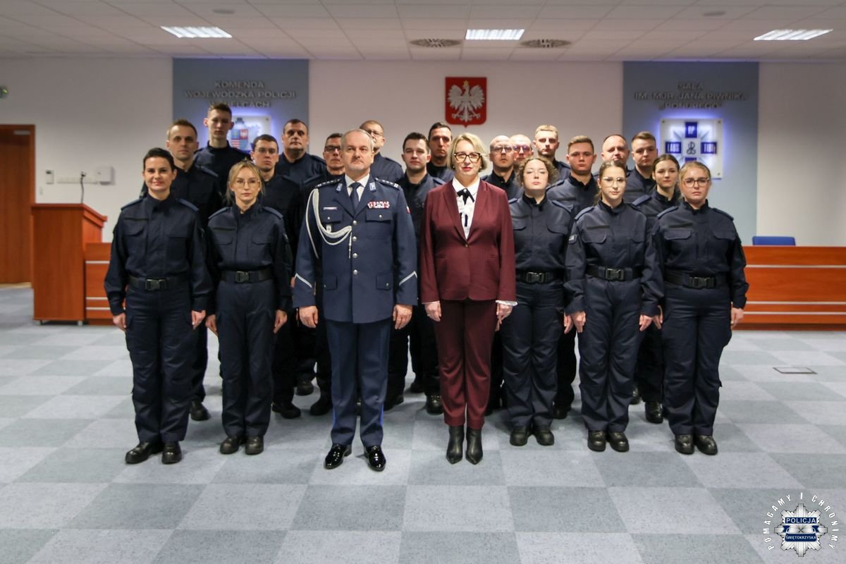 Dziś w Sali Narad im. mjr. Jana Piwnika „Ponurego” odbyła się uroczystość ślubowania 20 nowo przyjętych funkcjonariuszy. W wydarzeniu uczestniczyła kadra kierownicza garnizonu na czele z Pierwszym Zastępcą Komendanta Wojewódzkiego Policji w Kielcach inspektorem Tomaszem Jaroszem. Obecni byli także komendanci powiatowi i miejski, dowódcy jednostek i naczelnicy poszczególnych wydziałów. W uroczystości uczestniczyła także Pani Jolanta Madioury – Doradca Wojewody Świętokrzyskiego.