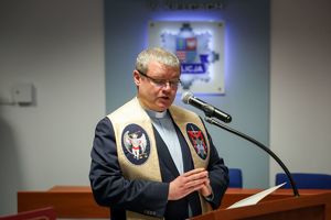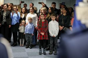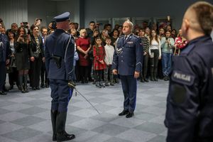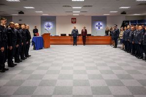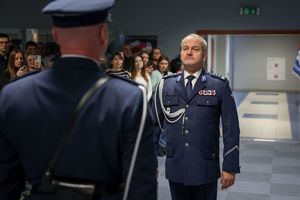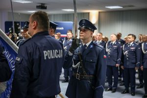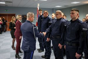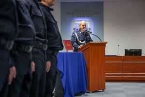 Inspektor przywitał wszystkich zgromadzonych, szczególnie nowo przyjętych. „Przeszliście długą drogę rekrutacji, która na pewno nie była łatwa” – zwracał się do nich. Pan komendant dziękował rodzinom ślubujących za wsparcie, którego służba w Policji będzie wymagać także od nich.