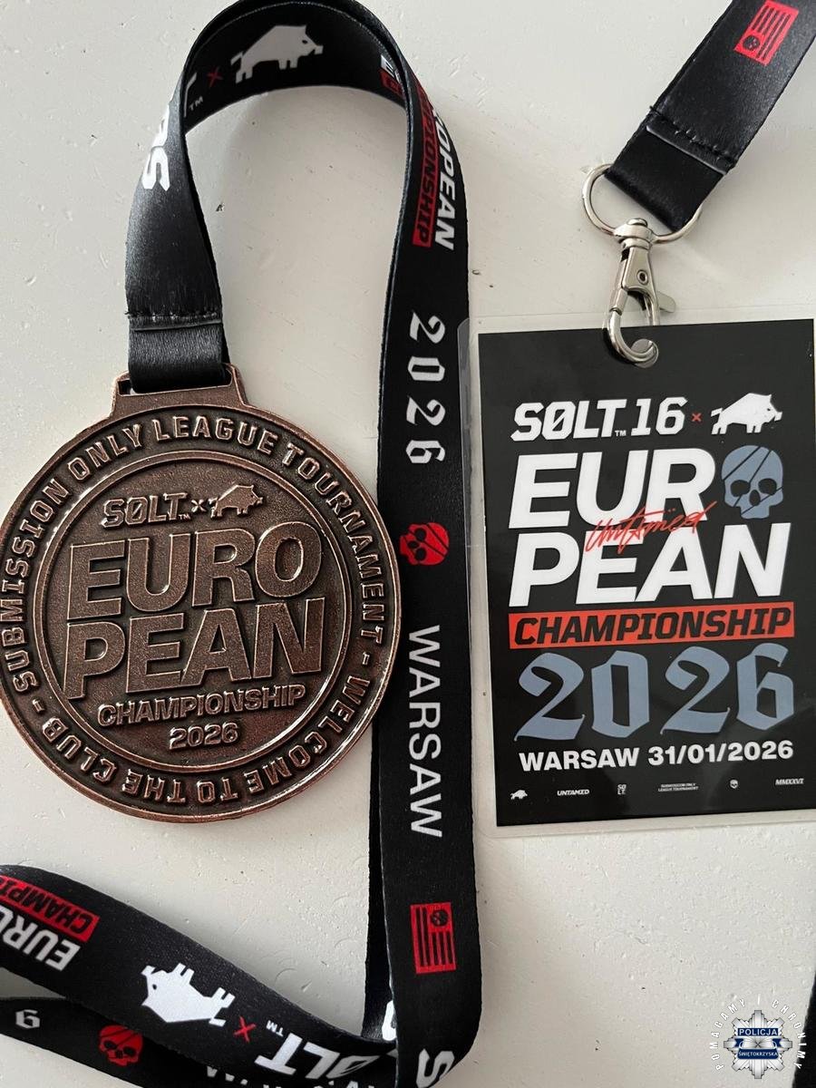 Mł. asp. Michał Jaworski z Wydziału Kadr i Szkolenia Komendy Wojewódzkiej Policji w Kielcach zdobył 3. miejsce podczas Mistrzostw Europy Submission Only League BJJ – European Championship 2026. W zawodach wzięło udział blisko 1200 zawodników z całej Europy.