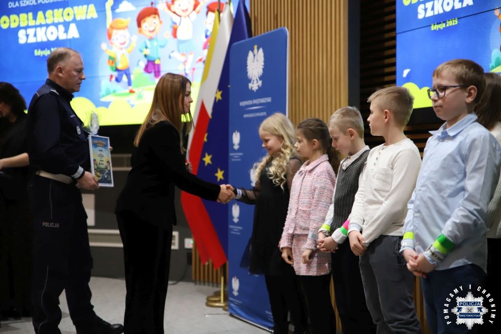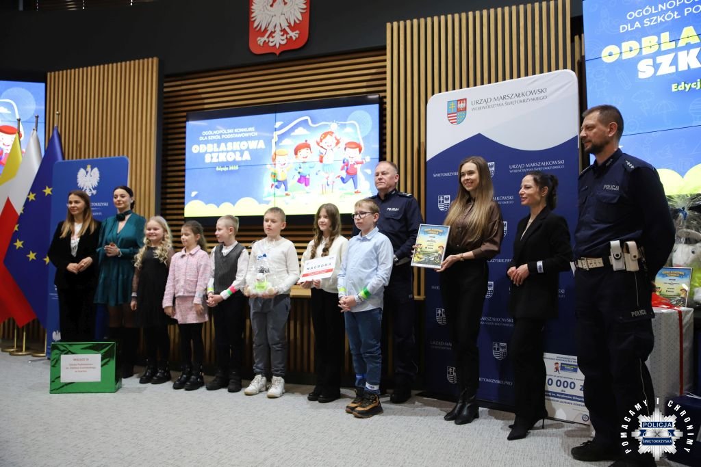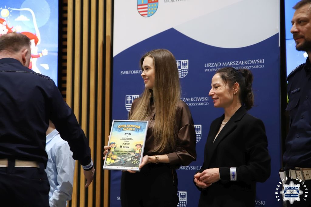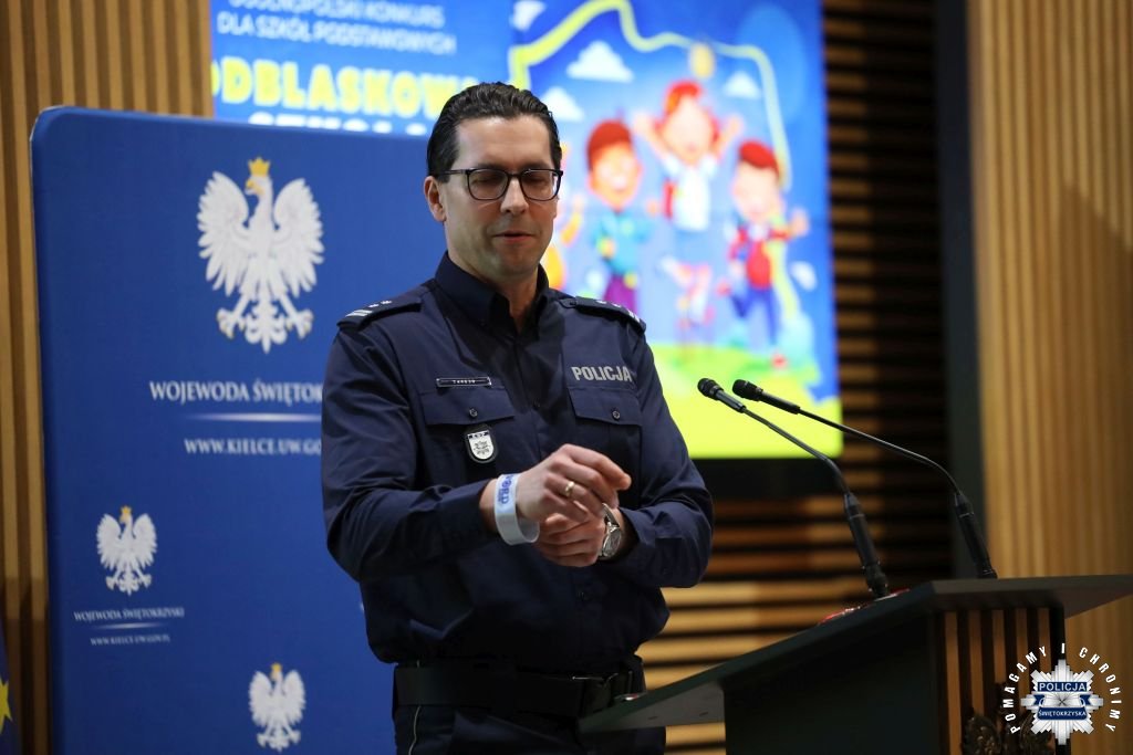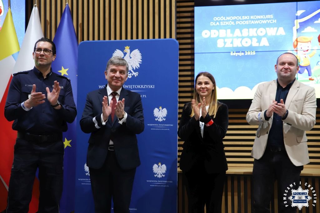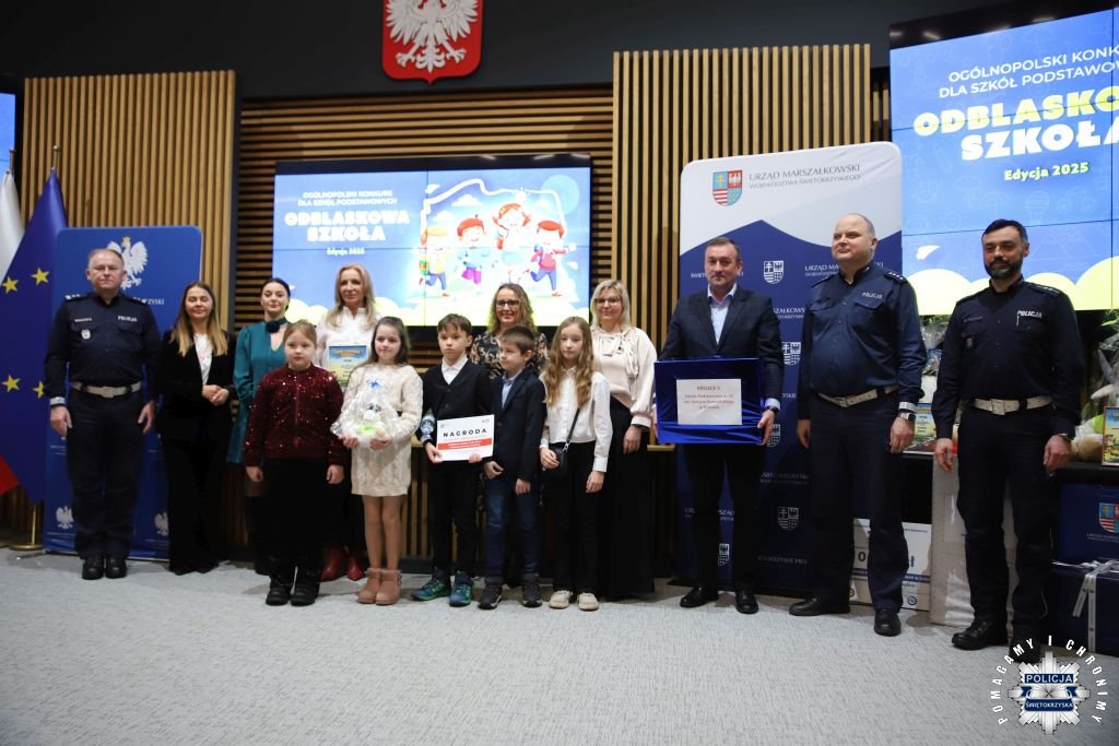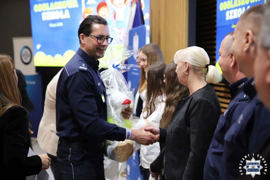 Dziś w Świętokrzyskim Urzędzie Wojewódzkim w Kielcach odbyła się uroczysta gala wręczenia nagród dla laureatów konkursu „ODBLASKOWA SZKOŁA 2025”. W wydarzeniu uczestniczył Zastępca Komendanta Wojewódzkiego Policji w Kielcach mł. insp. Marcin Chatys.
