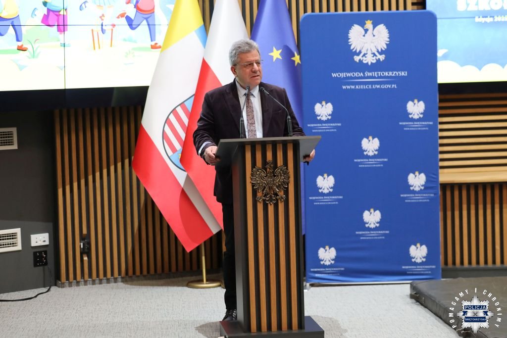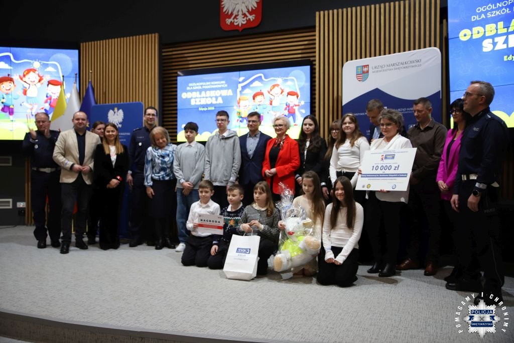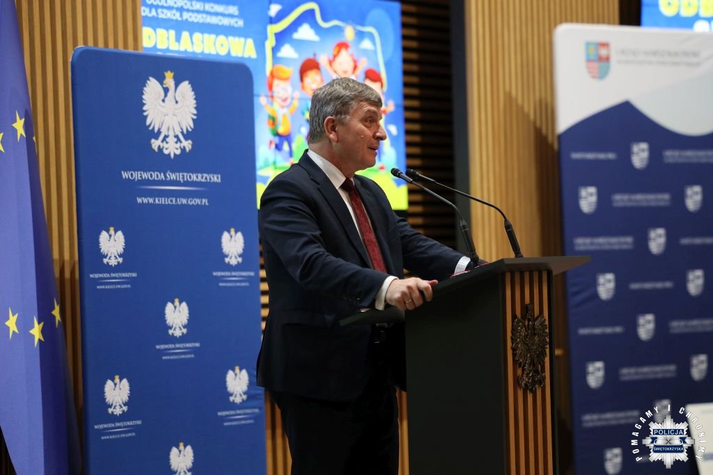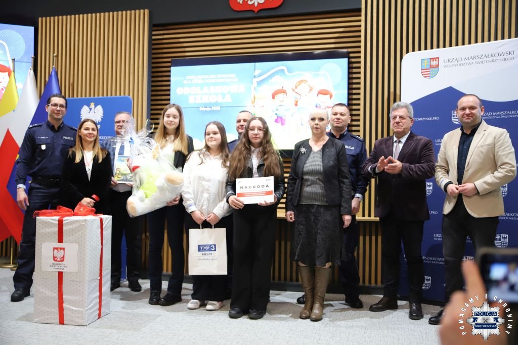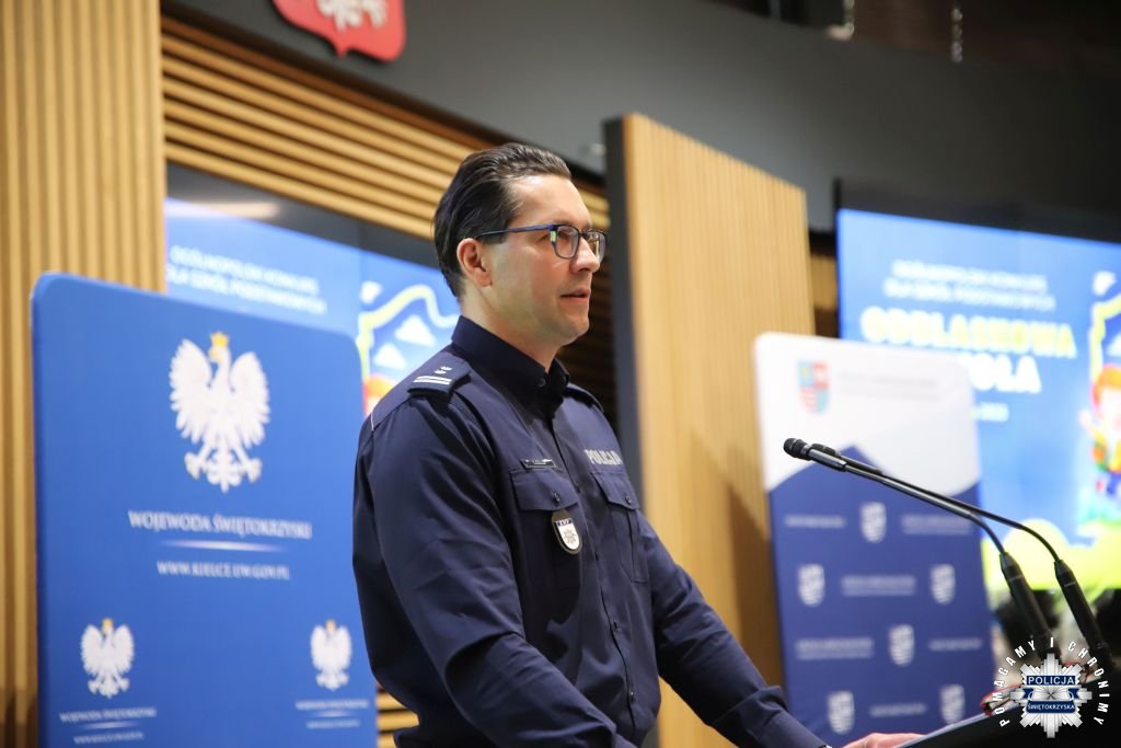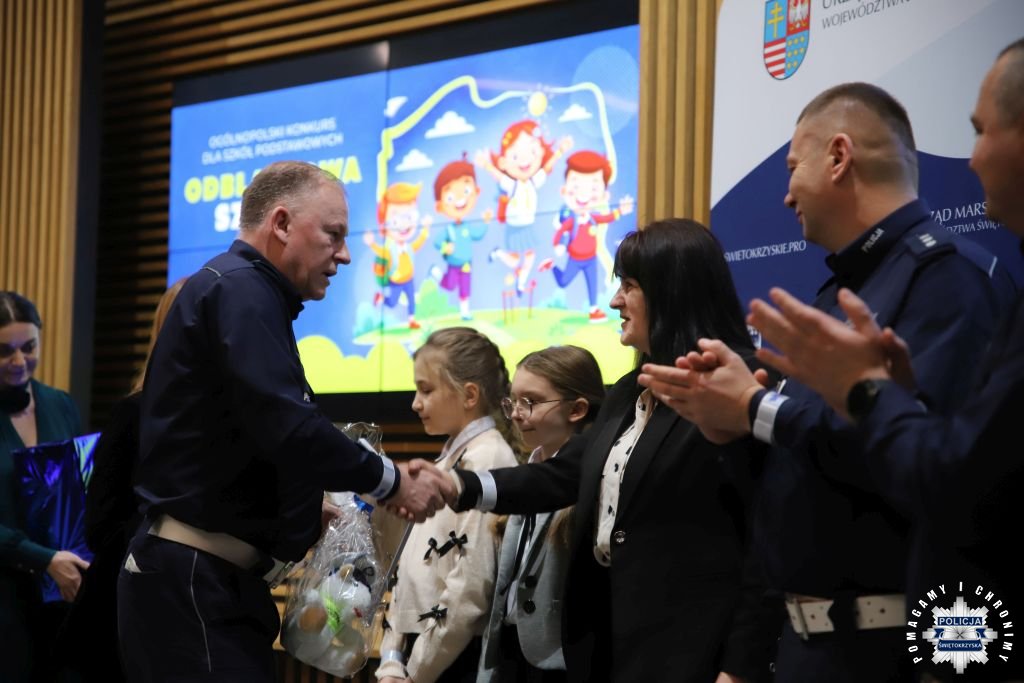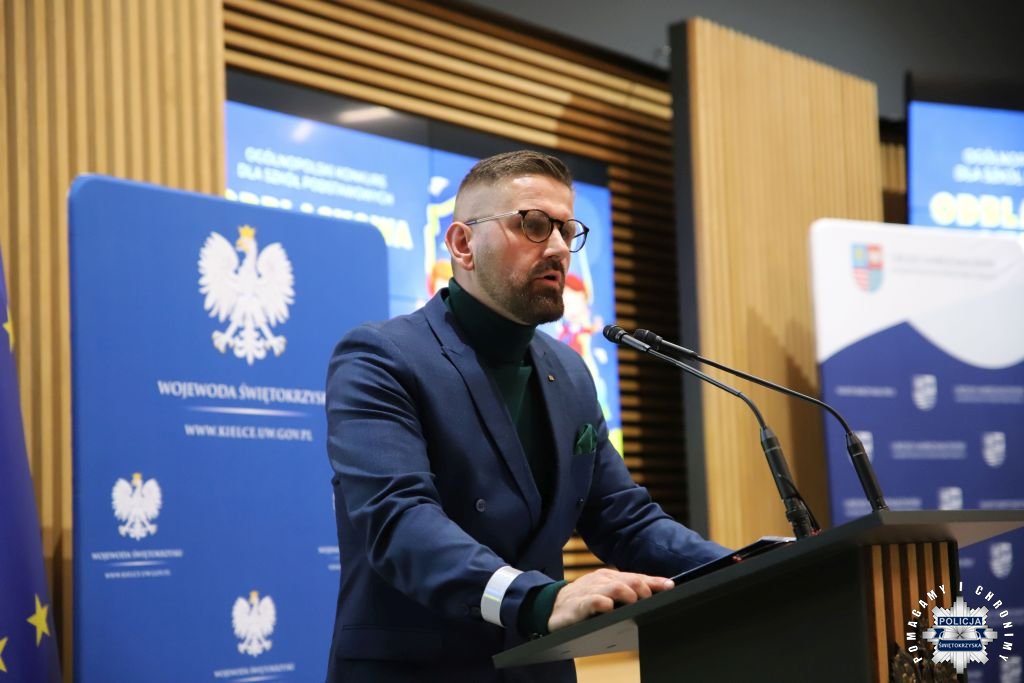 Dziś w Świętokrzyskim Urzędzie Wojewódzkim w Kielcach odbyła się uroczysta gala wręczenia nagród dla laureatów konkursu „ODBLASKOWA SZKOŁA 2025”. W wydarzeniu uczestniczył Zastępca Komendanta Wojewódzkiego Policji w Kielcach mł. insp. Marcin Chatys.