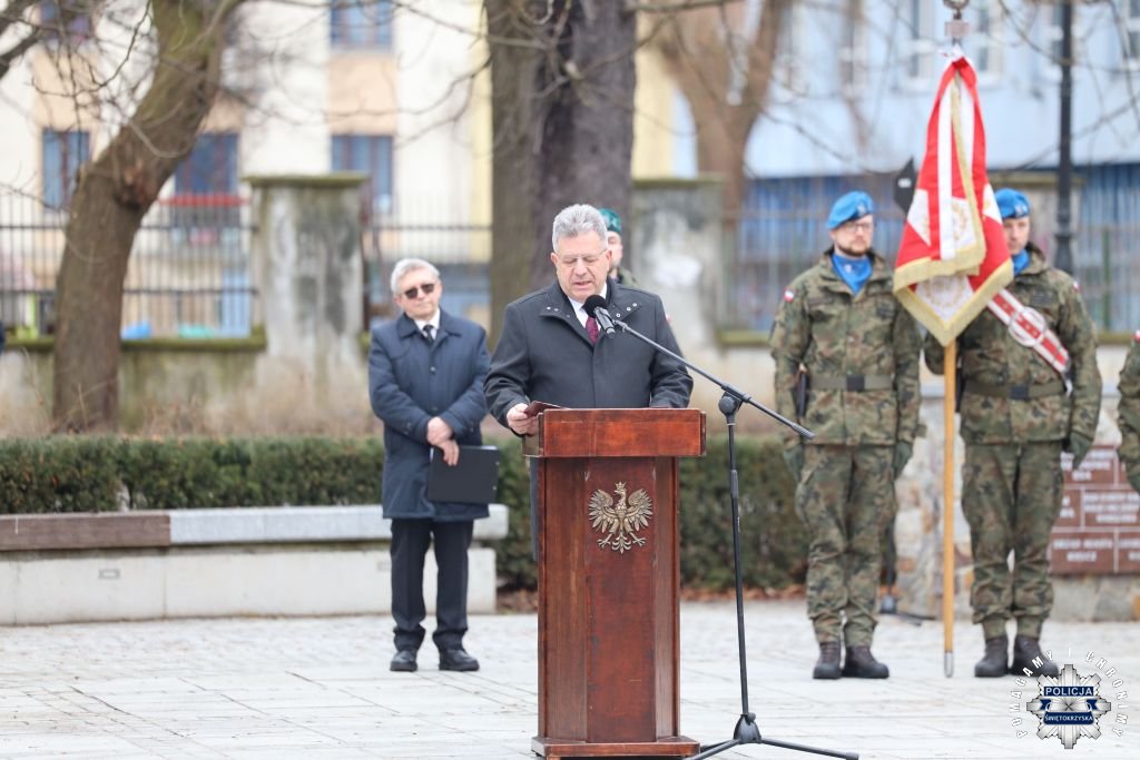 Przed Pomnikiem Armii Krajowej w Kielcach odbyły się dzisiaj uroczystości upamiętniające 84. rocznicę sformowania Armii Krajowej. W wydarzeniu udział wziął m.in. wicewojewoda świętokrzyski Józef Bryk, a funkcjonariuszy z naszego garnizonu reprezentowali Pierwszy Zastępca Komendanta Wojewódzkiego Policji w Kielcach insp. Tomasz Jarosz wraz z Komendantem Miejskim insp. Wojciechem Królem.
