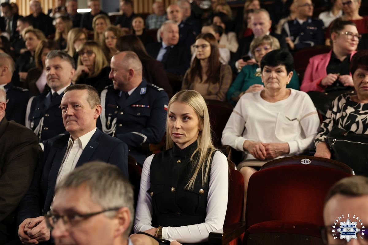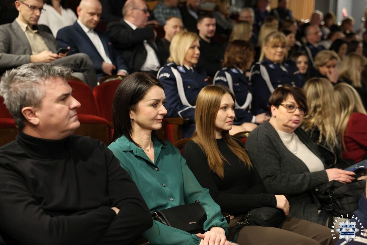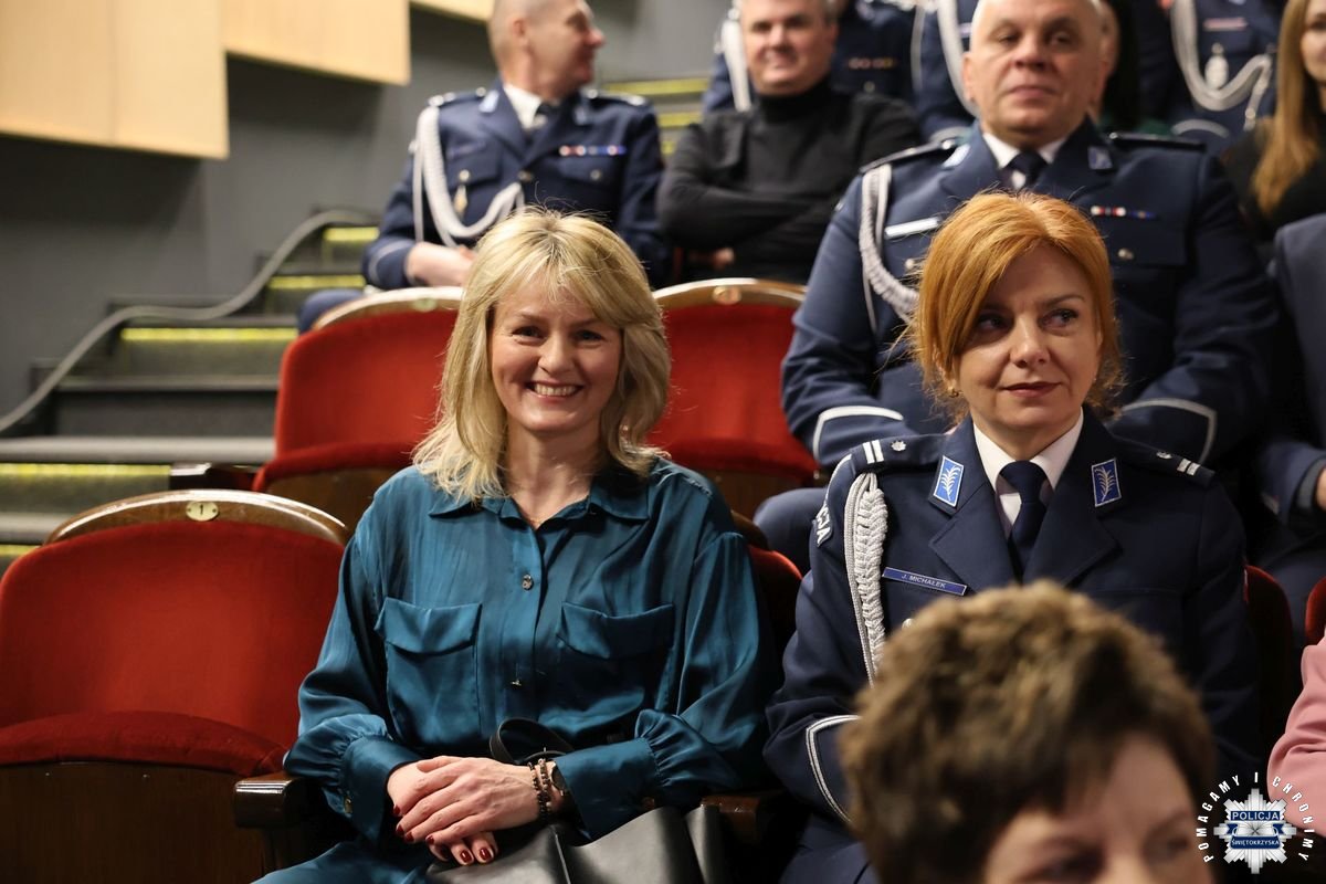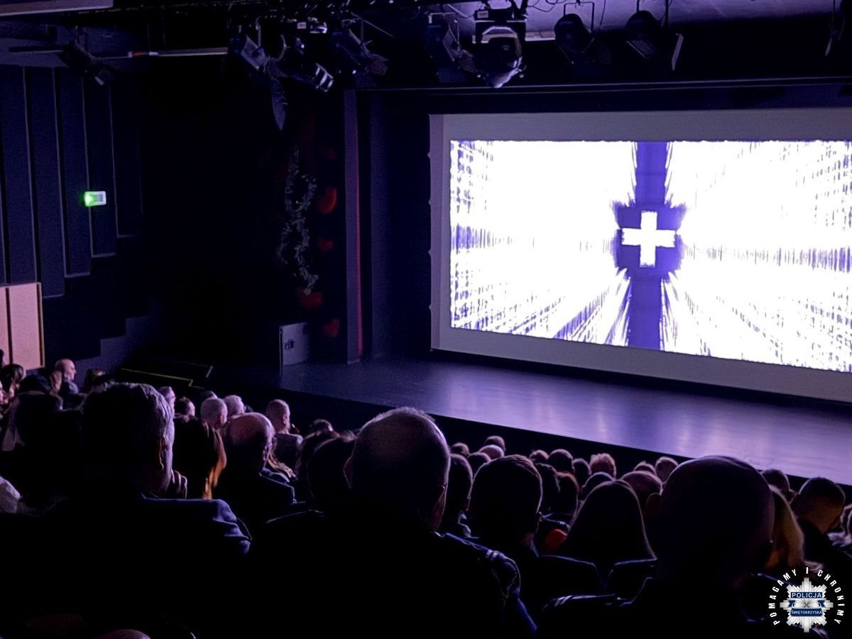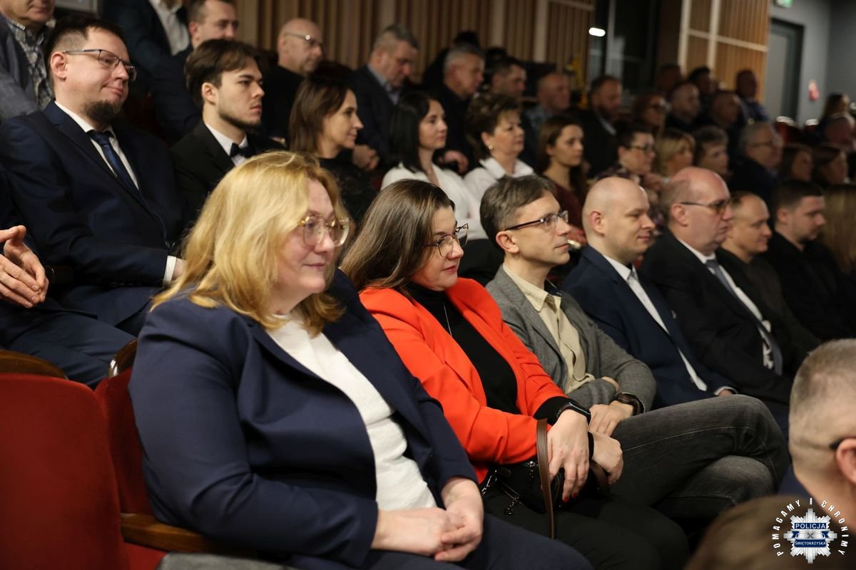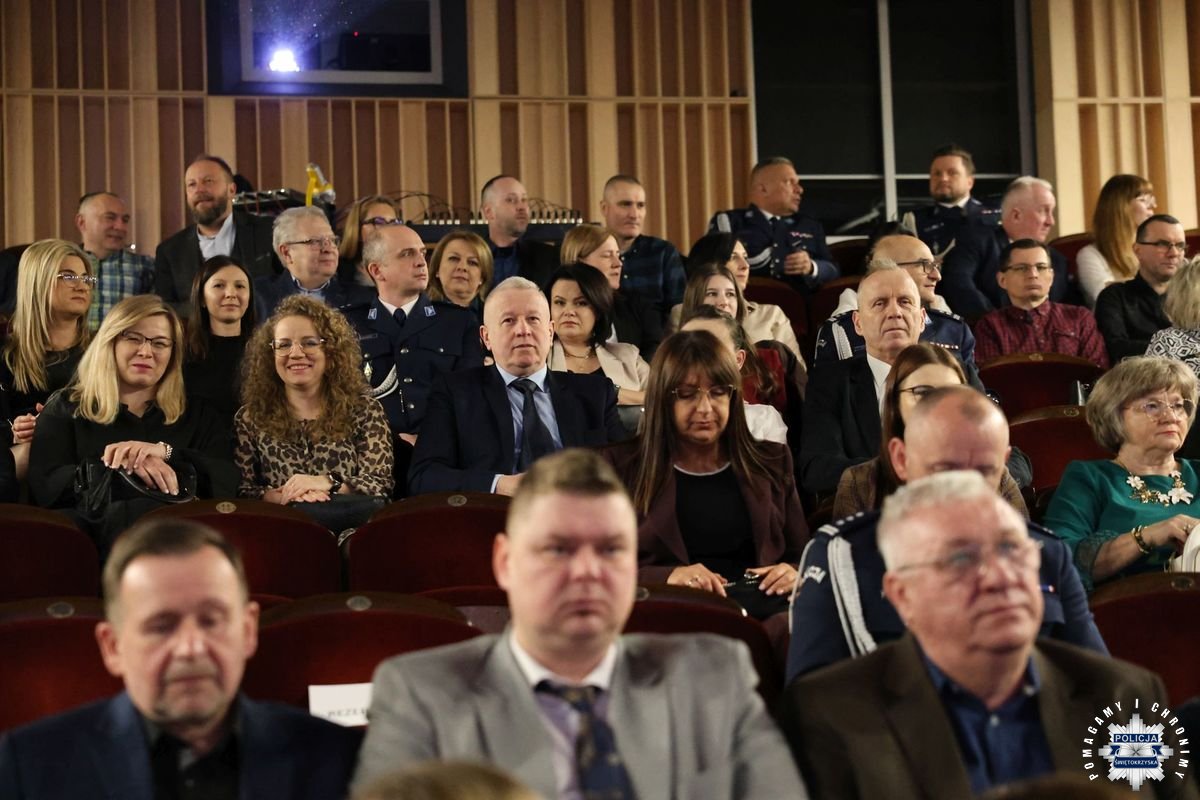 W imieniu Komendanta Wojewódzkiego Policji w Kielcach insp. Zbigniewa Nowaka, na sali kinowej w Wojewódzkim Domu Kultury w Kielcach przywitano Panią Dyrektor Magdalenę Fogiel-Litwinek, obecny był także Pierwszy Zastępca szefa świętokrzyskich policjantów insp. Tomasz Jarosz, Komendant Miejski i Komendanci Powiatowi Policji garnizonu świętokrzyskiego, naczelnicy wydziałów, kierownicy sekcji, a także osoby zajmujące samodzielne stanowiska.