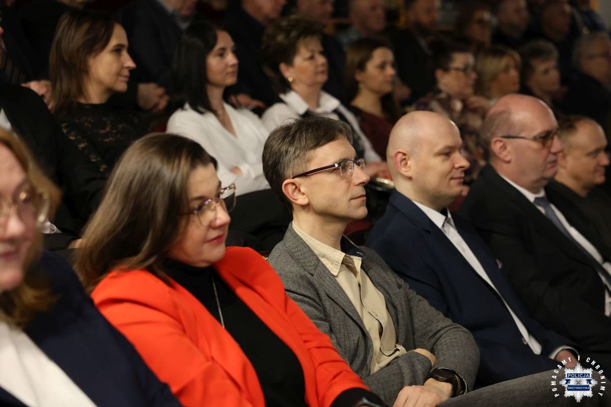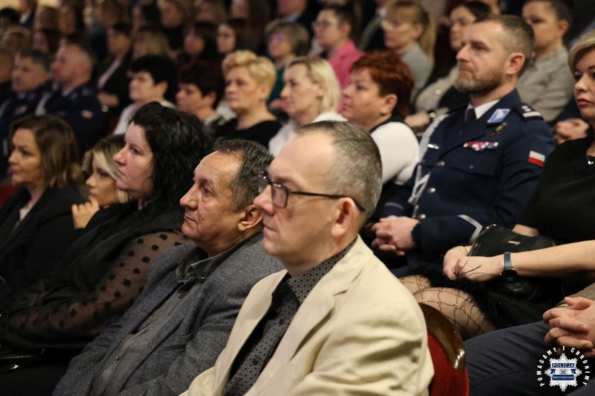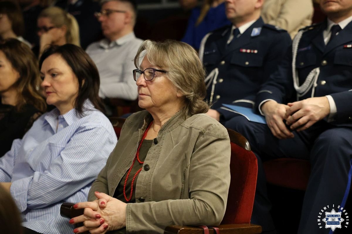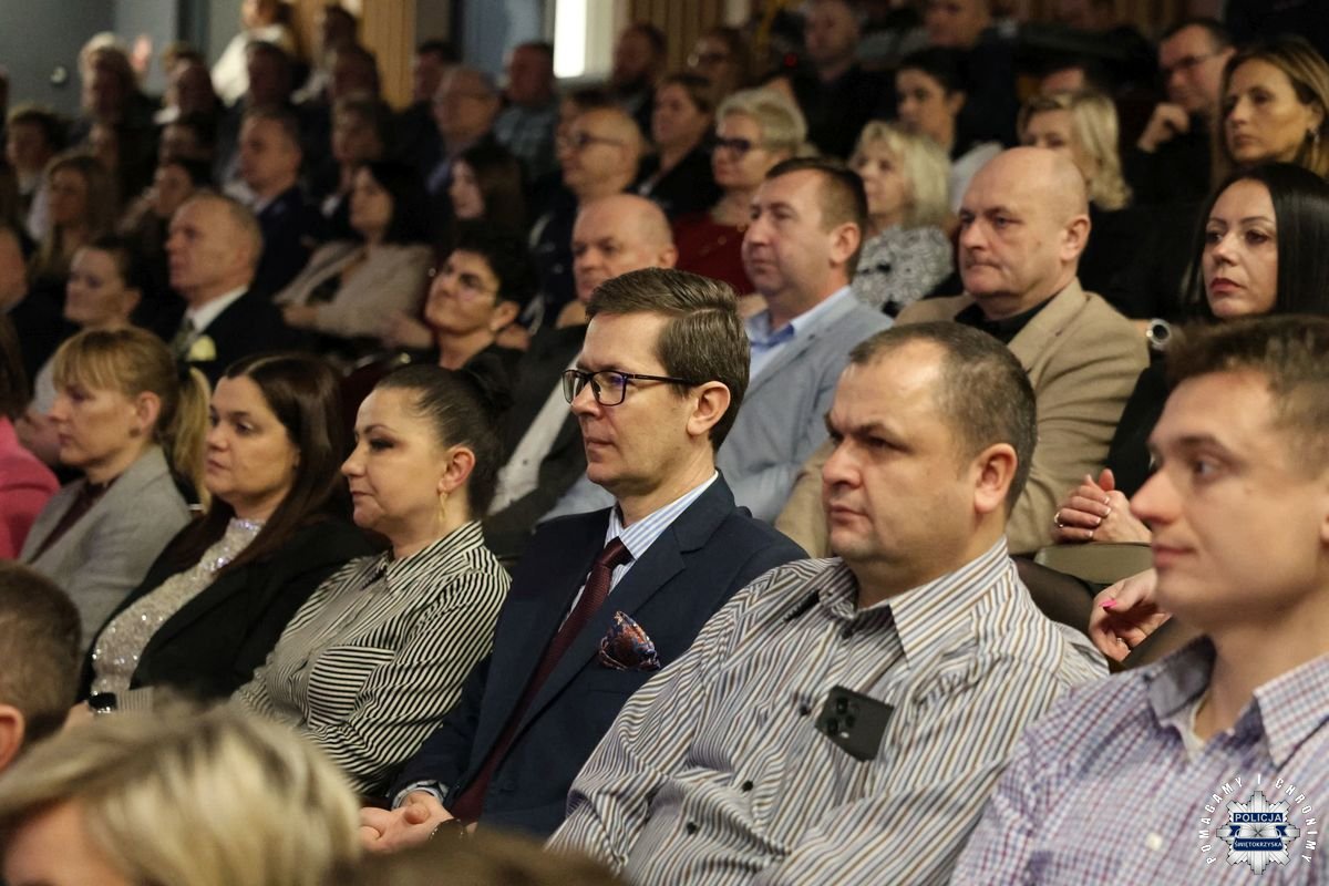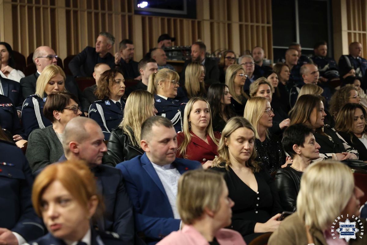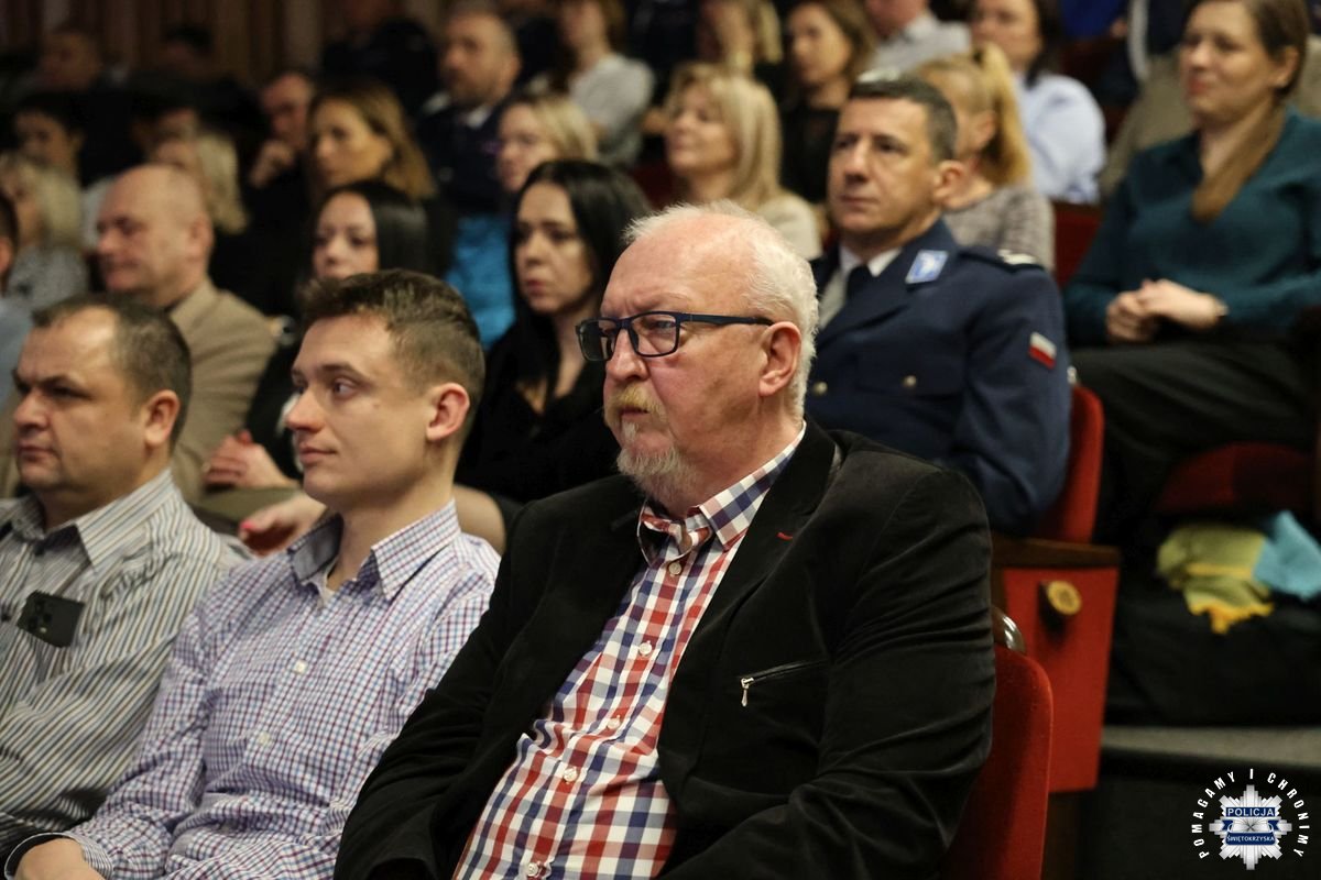 W imieniu Komendanta Wojewódzkiego Policji w Kielcach insp. Zbigniewa Nowaka, na sali kinowej w Wojewódzkim Domu Kultury w Kielcach przywitano Panią Dyrektor Magdalenę Fogiel-Litwinek, obecny był także Pierwszy Zastępca szefa świętokrzyskich policjantów insp. Tomasz Jarosz, Komendant Miejski i Komendanci Powiatowi Policji garnizonu świętokrzyskiego, naczelnicy wydziałów, kierownicy sekcji, a także osoby zajmujące samodzielne stanowiska.