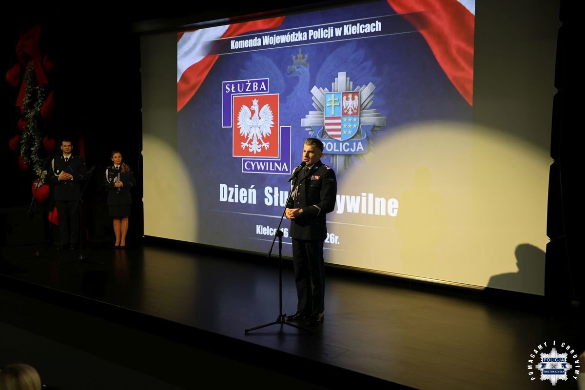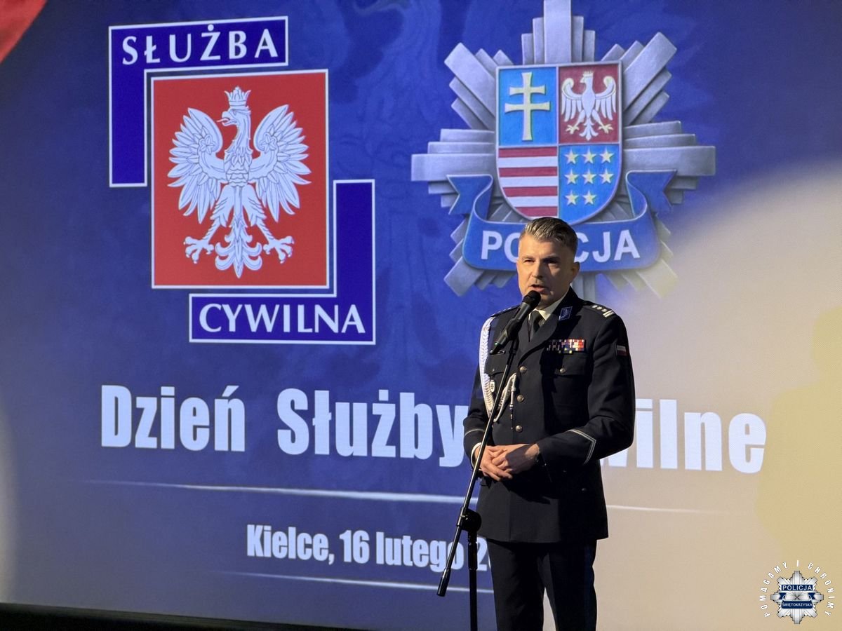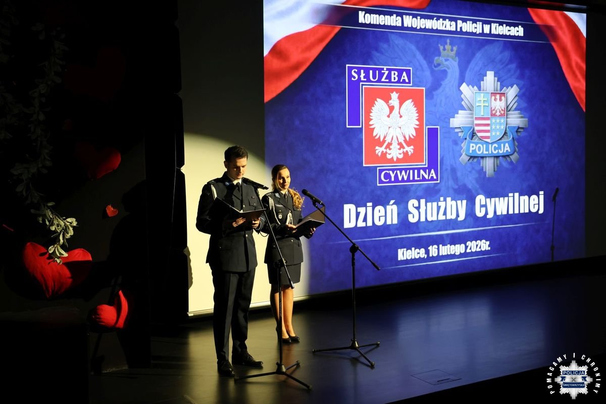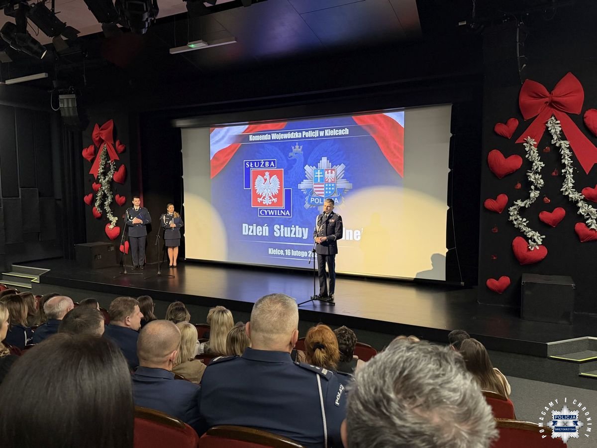 Dziś odbyło się uroczyste spotkanie w Wojewódzkim Domu Kultury w Kielcach. Okazja szczególna – nadchodzący Dzień Służby Cywilnej, święto, które historycznie i symbolicznie przypada na 17 lutego. Na sali zebrali się pracownicy cywilni świętokrzyskiej Policji, nie zabrakło także funkcjonariuszy z Komendantem Wojewódzkim Policji w Kielcach insp. Zbigniewem Nowakiem na czele, którzy uczcili święto i podziękowali zebranym. Na zaproszonych gości czekała także filmowa niespodzianka.
