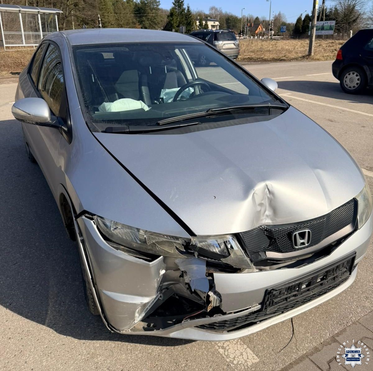 Wczoraj w godzinach południowych, pod jeden z marketów w Bliżynie podjechała osobowa Honda z widocznymi śladami po zdarzeniu drogowym. Uszkodzona przednia część karoserii, wystrzelone poduszki powietrzne oraz ciągły sygnał klaksonu wzbudziły natychmiastową reakcję świadków. Pierwszy zareagował przechodzień, który natychmiast podszedł do auta unieruchomionego na wjeździe parkingu. Otworzył drzwi samochodu i widząc, że kierujący jest pijany, poprosił o opuszczenie pojazdu i oddanie kluczyków. Drugi ze świadków zdarzenia zaalarmował Policję. Mężczyzna do czasu przybycia patrolu był pod nadzorem czujnych świadków. Gdy na miejsce dotarli policjanci ruchu drogowego potwierdziły się przypuszczenia co do stanu trzeźwości kierującego. Przeprowadzone badanie wskazało na ponad 3 promile alkoholu w organizmie 56-latka. Rozpytany na okoliczność uszkodzeń pojazdu przyznał, że uderzył w drzewo. We wskazanym miejscu policjanci znaleźli brakującą tablicę rejestracyjną. Mężczyzna został zatrzymany. Za prowadzenie samochodu w stanie nietrzeźwości grozi mu kara do 3 lat pozbawienia wolności, wysoka grzywna oraz wieloletni zakaz prowadzenia pojazdów.