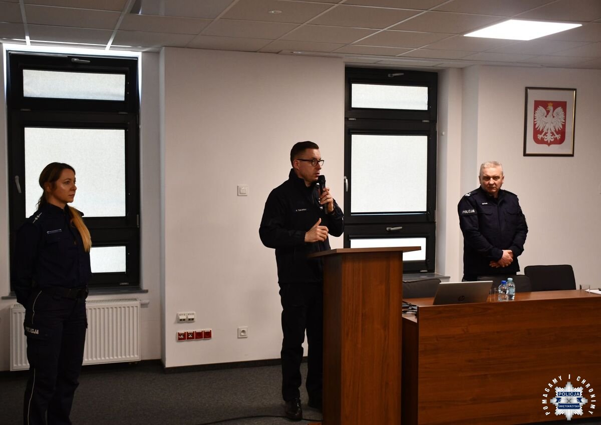 W Komendzie Powiatowej Policji w Sandomierzu odbyło się dziś szkolenie dla funkcjonariuszy, na którym podnoszone były kwestie kontaktu policjantów z mediami oraz prawnych aspektów ochrony wizerunku policjanta. Głównym prelegentem spotkania był Rzecznik Prasowy Komendanta Wojewódzkiego Policji w Kielcach – młodszy inspektor Kamil Tokarski.