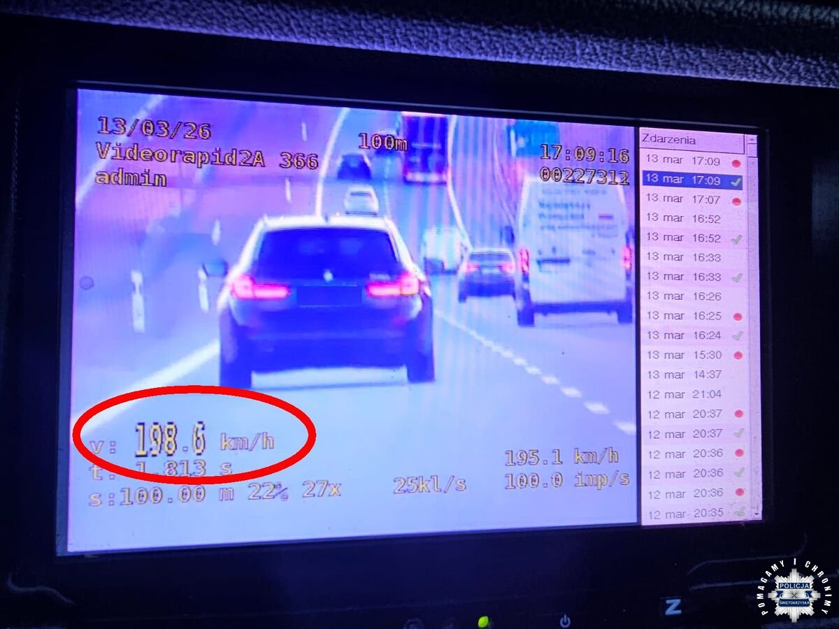 Do zdarzenia doszło na drodze ekspresowej S7 na wysokości miejscowości Moczydło. Funkcjonariusze prowadzący kontrolę prędkości ujawnili kierującego samochodem marki BMW, który poruszał się z prędkością 198 km/h w miejscu, gdzie obowiązuje ograniczenie do 120 km/h. Za kierownicą pojazdu siedział 38-letni mężczyzna. Podczas kontroli okazało się, że kierujący popełnił wykroczenie w warunkach tzw. recydywy drogowej, co oznacza, że w ostatnim czasie był już karany za podobne naruszenie przepisów ruchu drogowego. W związku z przekroczeniem dopuszczalnej prędkości o 78 km/h, a także działaniem w warunkach recydywy, na kierującego nałożono mandat karny w wysokości 5000 złotych. Na jego konto trafiło również 15 punktów karnych.
