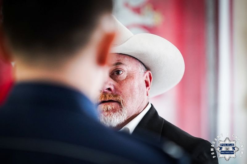 Szeryf Bobie Vickery odwiedził Opatów odpowiadając na zaproszenie Dyrektora Opatowskiego Ośrodka Kultury i włodarzy miasta a wizyta w opatowskiej jednostce policji była jednym z elementów poznawania miasta.