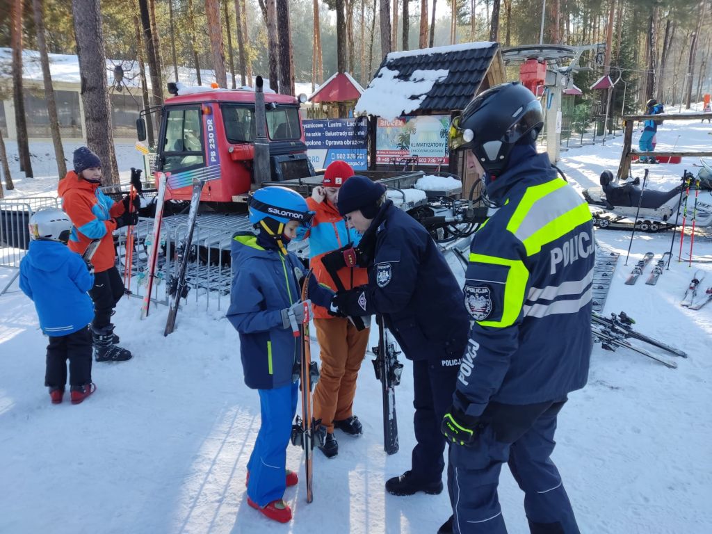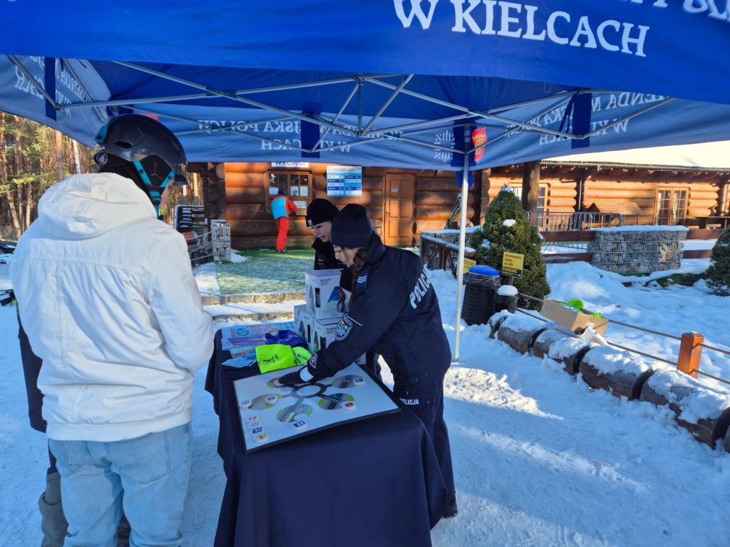 z funkcjonariuszami Komendy Miejskiej Policji w Kielcach informowali miłośników białego szaleństwa o zasadach bezpieczeństwa nie tylko podczas wypoczynku w górach, w pobliżu zbiorników wodnych, na zorganizowanych półkoloniach ale także w przypadku spędzania wolego czasu w miejscu zamieszkania. Dla miłośników sportów zimowych przygotowano konkursy edukacyjne związane z bezpiecznym spędzaniem wolnego czasu zimą. Poprzez zabawę policjanci sprawdzali wiedzę z zakresu znajomości przepisów właściwego poruszania się po stokach narciarskich, ruchu drogowego ale również bezpiecznych zachowań w czasie wolnym od szkoły. Wszyscy uczestnicy konkursów otrzymywali nagrody rzeczowe, w tym m.in. kaski narciarskie, ślizgi zjazdowe, workoplecaki, smycze i odblaski. Uczestnikom aktywnego wypoczynku, zarówno dorosłym jak i dzieciom, wręczano ulotki oraz kieszonkowe informatory.