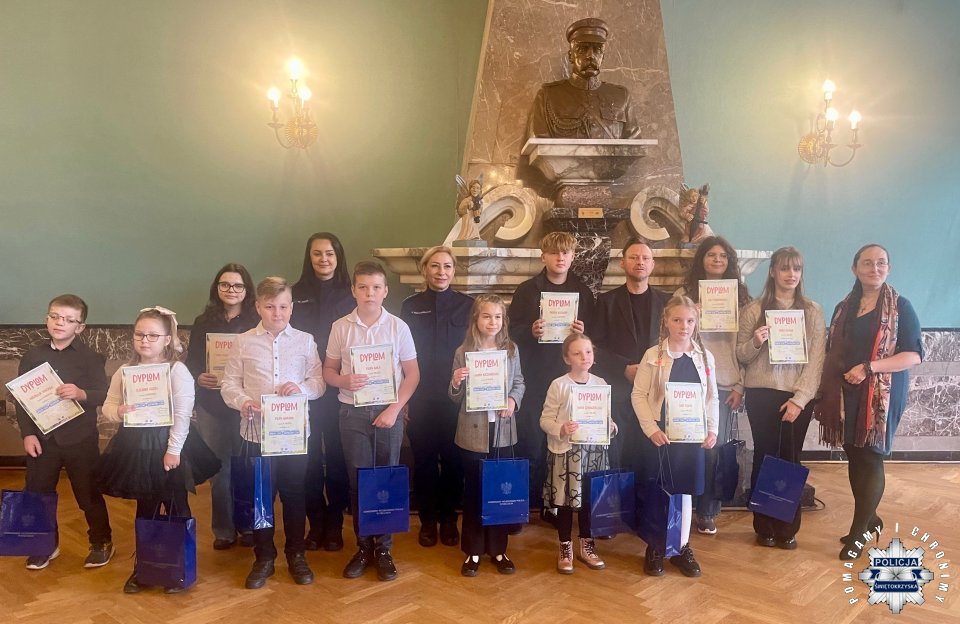 Laureaci konkursu otrzymali dyplomy ufundowane przez Wojewódzki Dom Kultury w Kielcach oraz nagrody rzeczowe ufundowane przez Wojewodę Świętokrzyskiego w ramach działań promujących bezpieczeństwo osobiste dzieci i młodzieży.