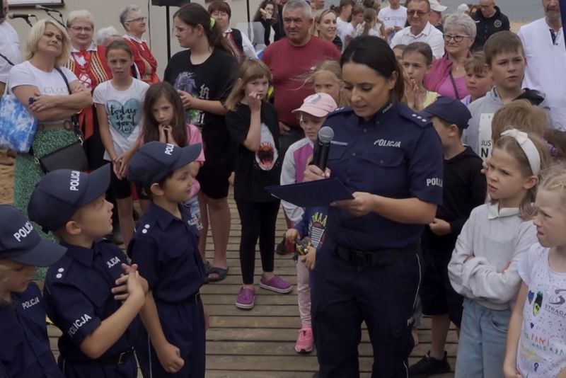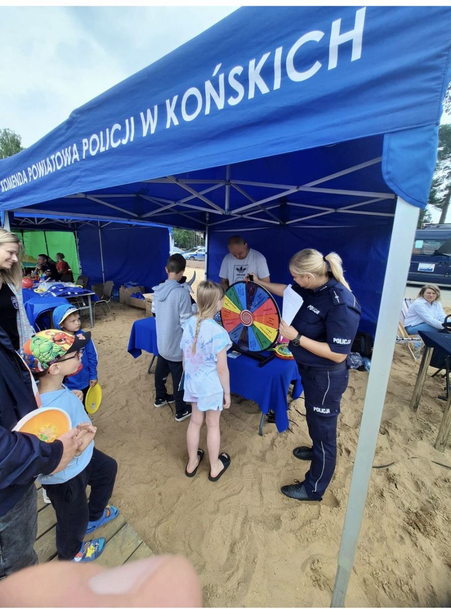 Ciekawym punktem wydarzenia był występ „Małych Policjantów” z Przedszkola nr 4 w Końskich, którzy w rytm piosenki „Panie Policjancie” przypomnieli o bezpieczeństwie. Dodatkowo mali mundurowi przypomnieli uczestnikom wydarzenia najważniejsze zasady bezpiecznego korzystania z kąpieliska. Następną atrakcją był pokaz akcji ratowniczej na zbiorniku wodnym, przygotowany przez Komendę Powiatową Państwowej Straży Pożarnej z Końskich.